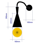 Lampara techo Trompeta 18cm negra colgante E27 cable negro