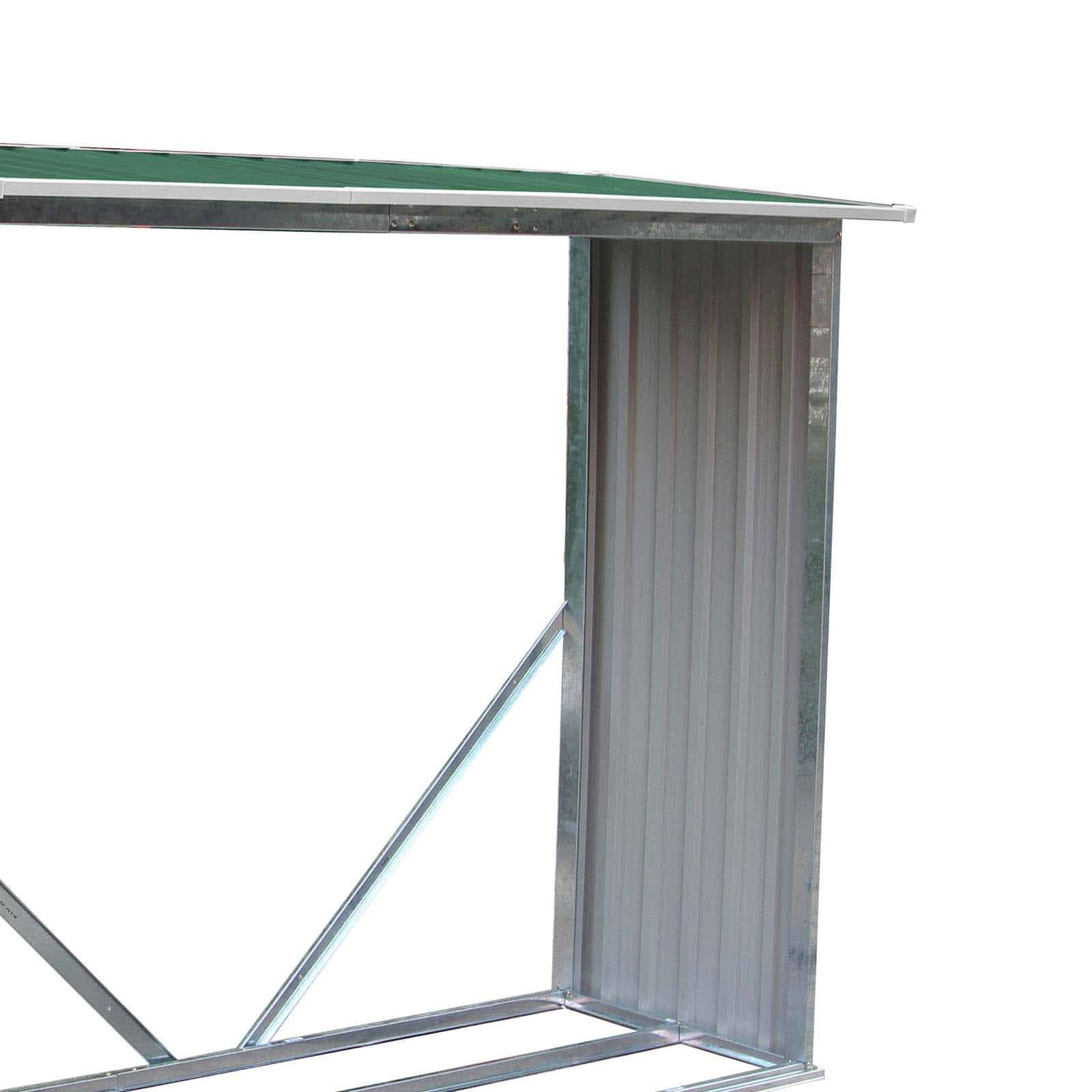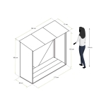 La construcción del leñero Holman se basa en acero zincado de 0,5-0,8 mm de espesor, ensamblado mediante tornillos, tuercas y arandelas para asegurar su solidez y seguridad. Su diseño versátil te permite adaptarlo a los laterales de una caseta metálica, maximizando el espacio exterior. Además, puedes colocarlo junto a una pared gracias al tejado a un agua que incorpora. La base del leñero facilita la organización de tus troncos, manteniéndolos siempre al alcance.