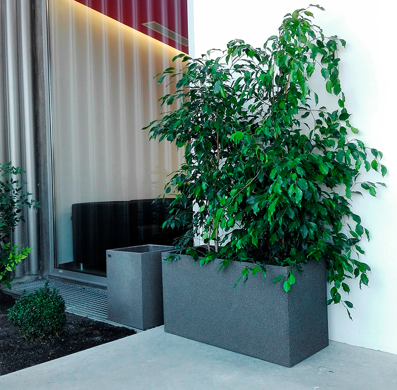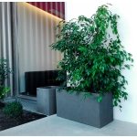 El Euclid [R] es una maceta de forma rectangular diseñada para uso tanto en exteriores como en interiores. Fabricada con hormigón de alta resistencia, presenta un acabado suave y texturizado que aporta un toque moderno y elegante a cualquier espacio.