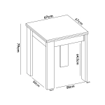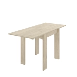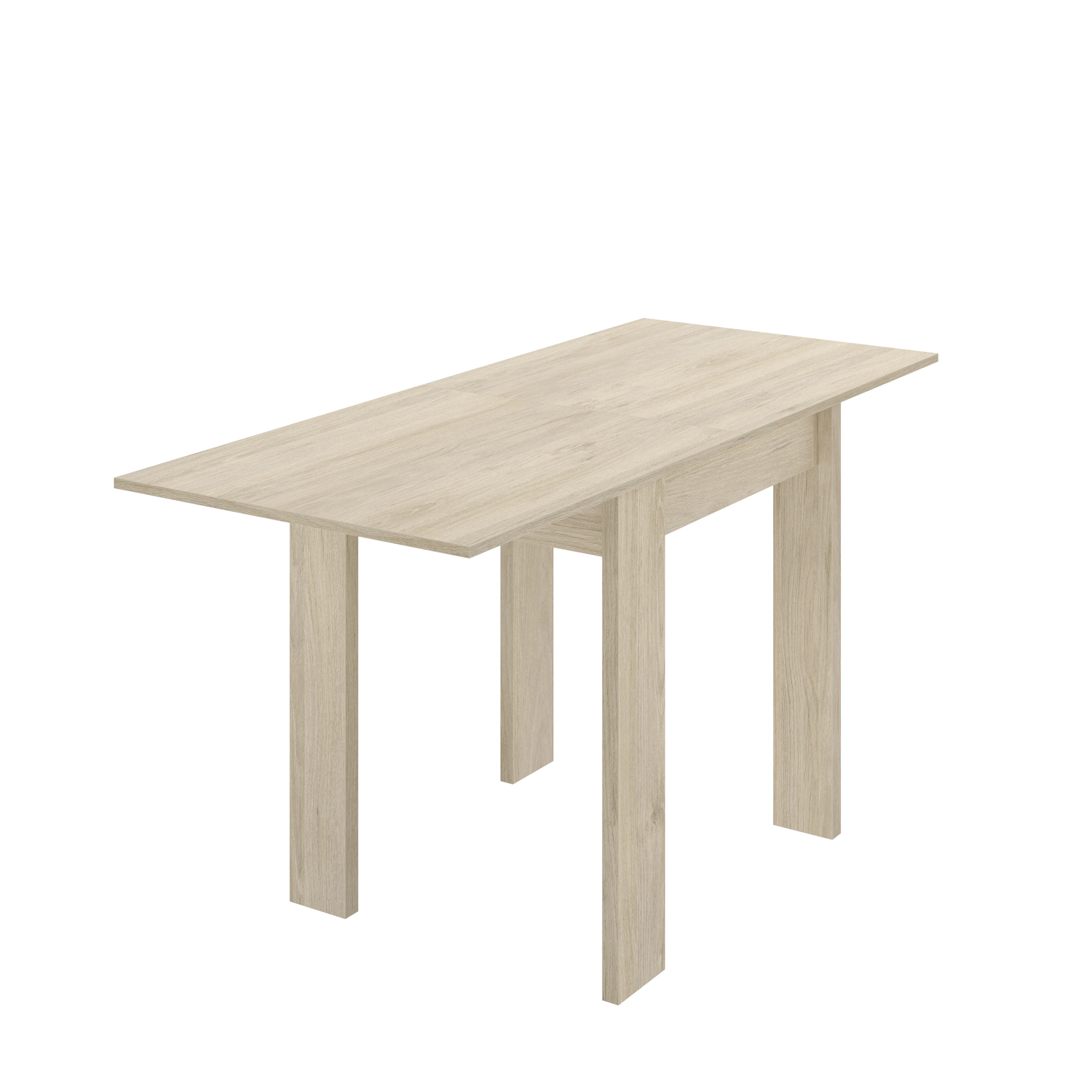 - Extendida (134 x 67 cm): Con un simple movimiento, se duplica su ancho, ofreciendo espacio cómodo para hasta 4 comensales. Ideal para reuniones improvisadas, cenas familiares o cuando necesitas más superficie de trabajo.