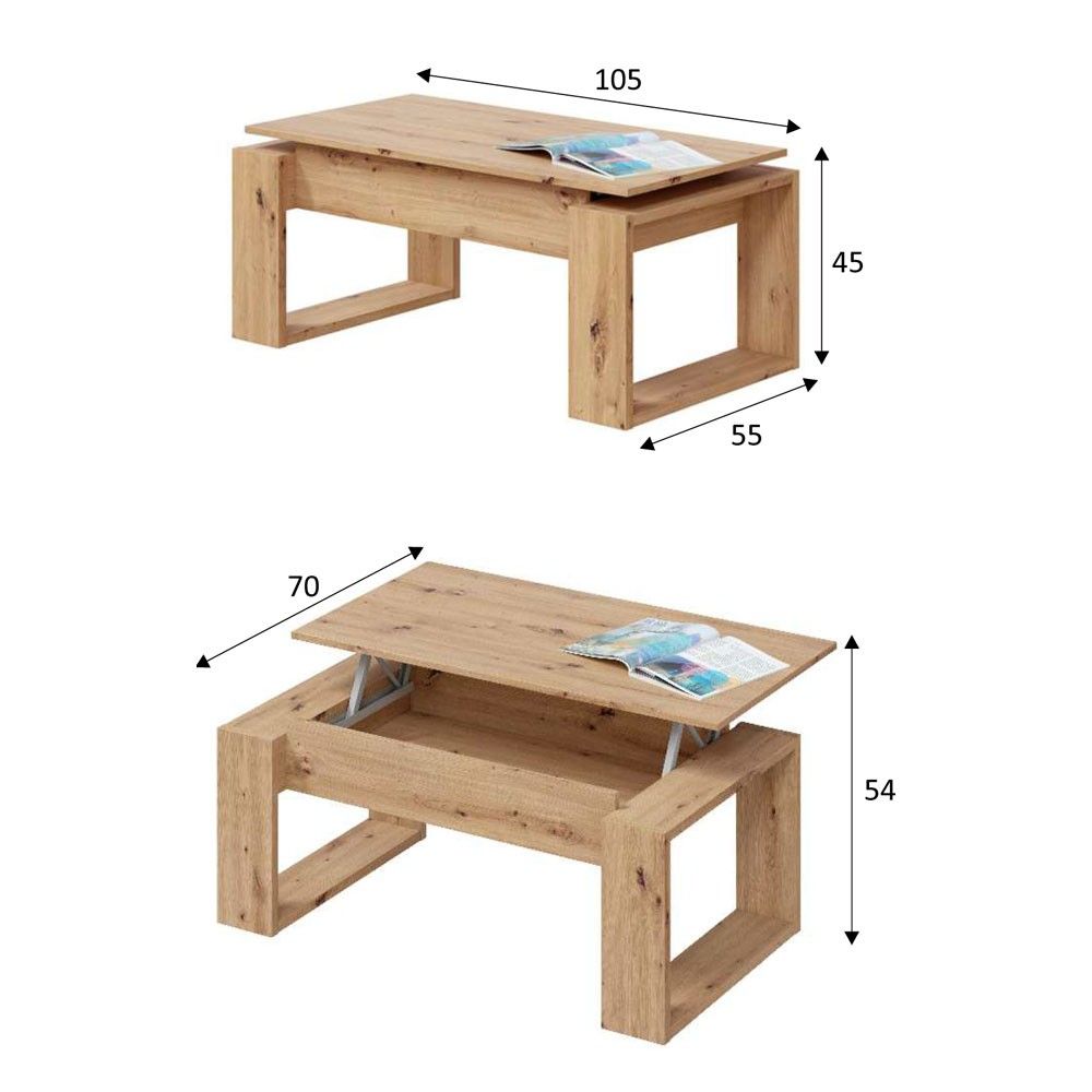 Mesa centro elevable Roble Nodi Barcelona Nova 105 x 45 – 54 x 55 – 70 cm