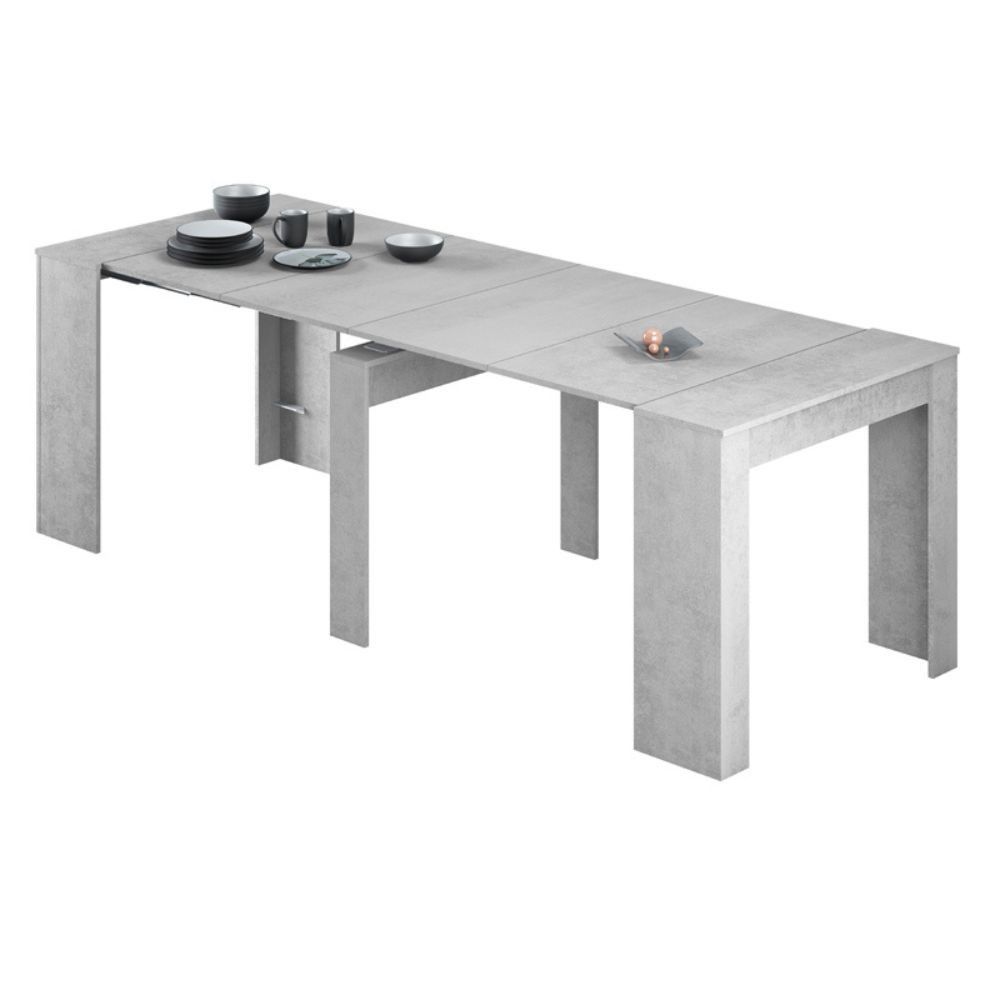 Con nuestra mesa consola extensible Kendra cemento, transforma tu espacio en un lugar ideal para reuniones familiares o amigos. ¡Adquiere ya la tuya y descubre el placer de una mesa que se adapta a tus necesidades!