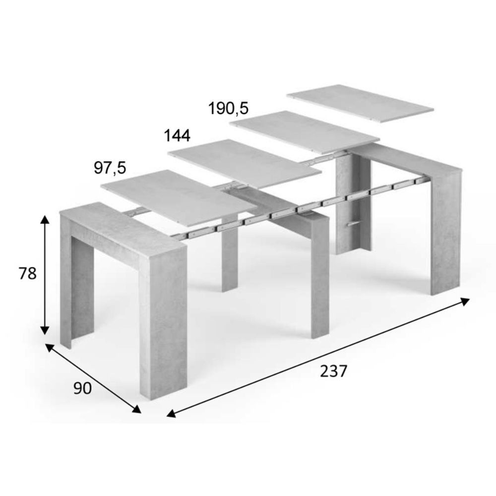 Mesa consola extensible Cemento 90 x 78 x 51 – 237 cm ¡5 posiciones!