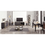 4. Materiales de Alta Calidad: La encimera de mármol negro y la combinación de aparador, mueble de TV y mesa baja a juego, todo hecho para hacer que tu hogar sea más que solo una casa, es un refugio de estilo.