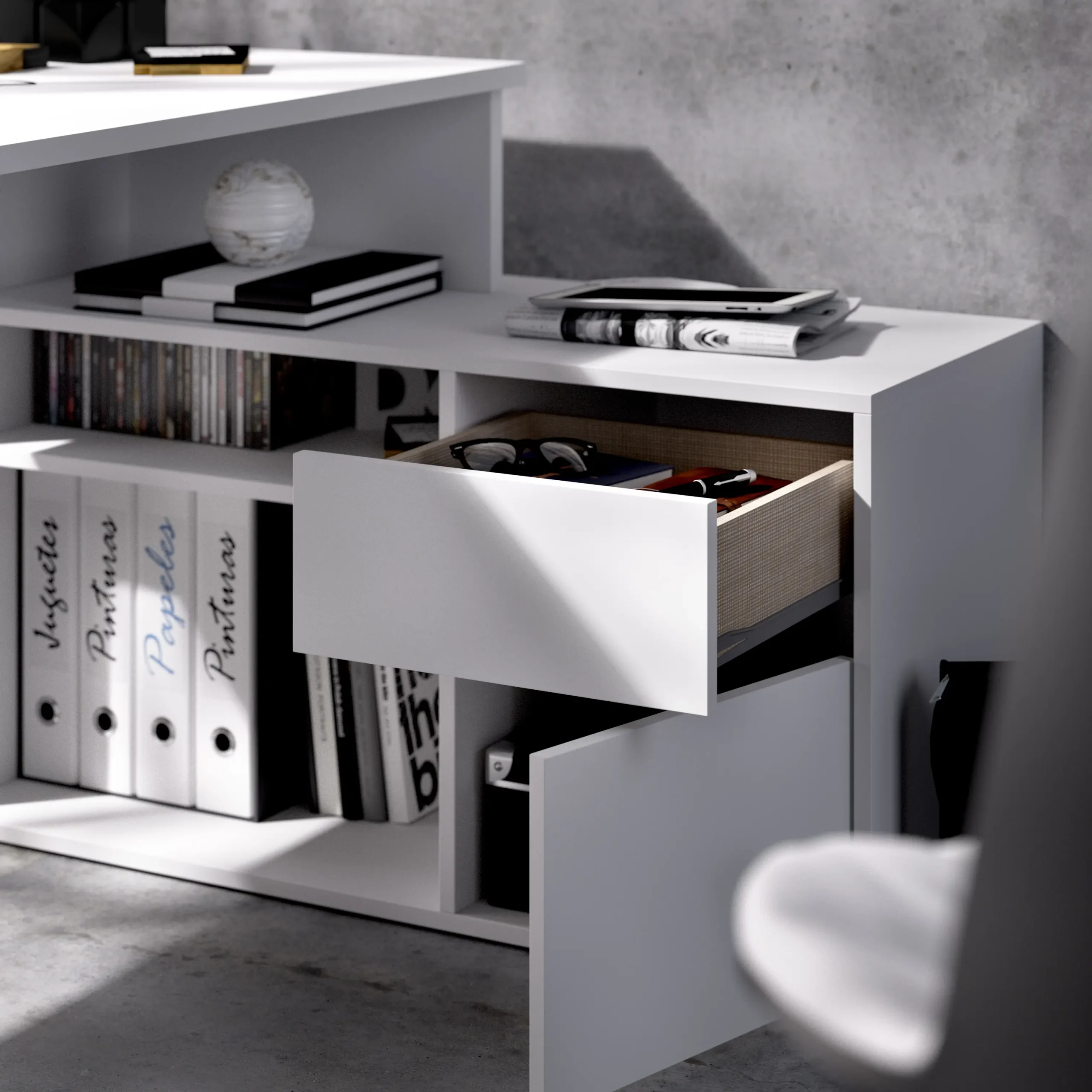 - Dos huecos abiertos que te permiten tener libros, archivadores o elementos decorativos al alcance.