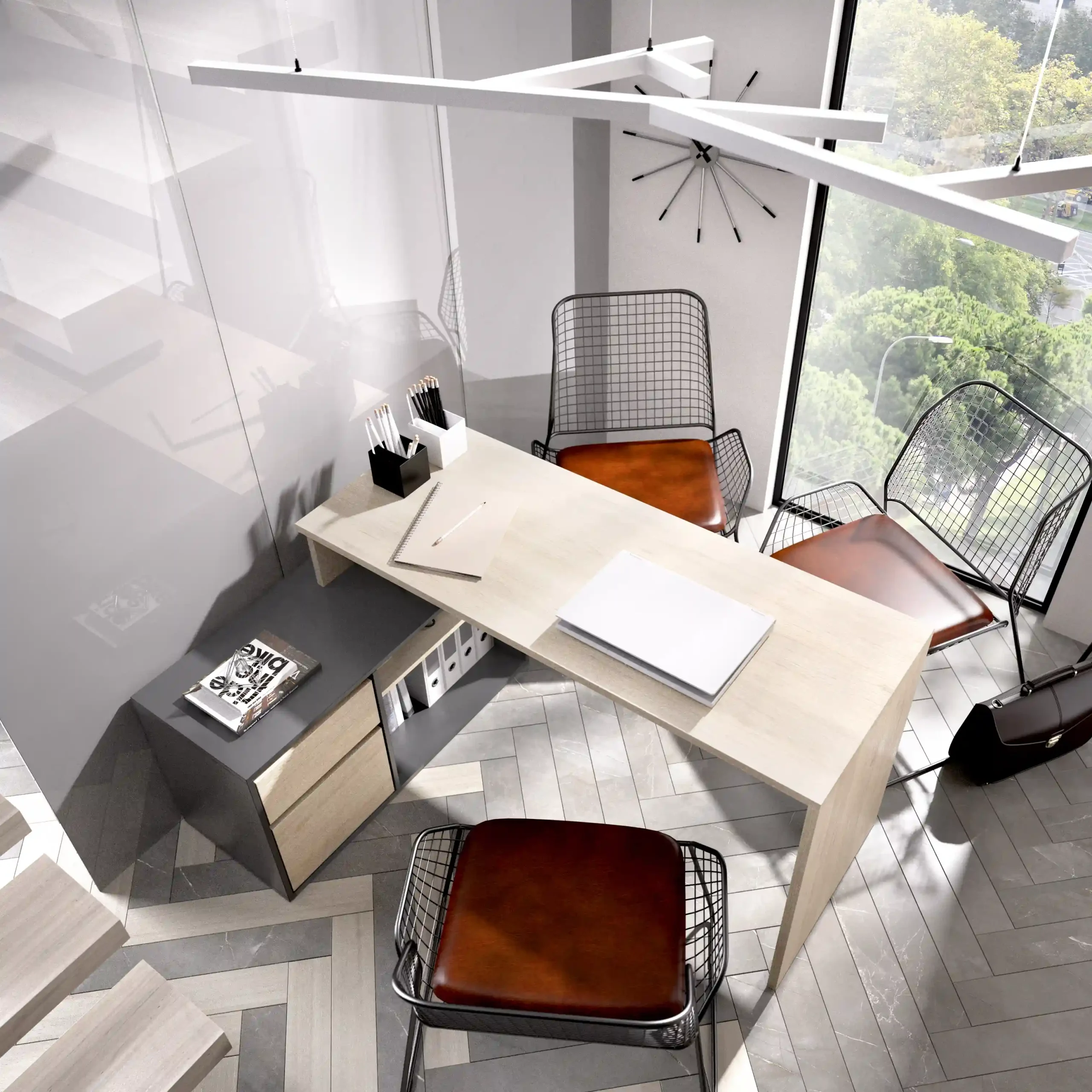- Blanco: Un clásico atemporal que aporta luminosidad, amplitud visual y una sensación de limpieza. Ideal para crear un ambiente de trabajo fresco y concentrado.