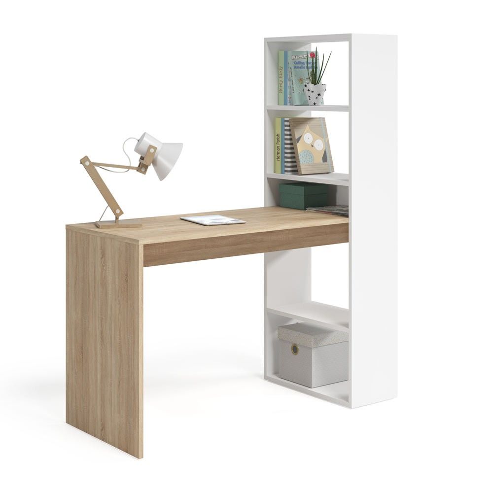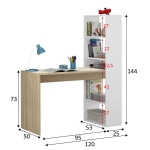 Mesa de estudio con estantería Duplo Blanco – Roble 120 x 144 x 53 cm