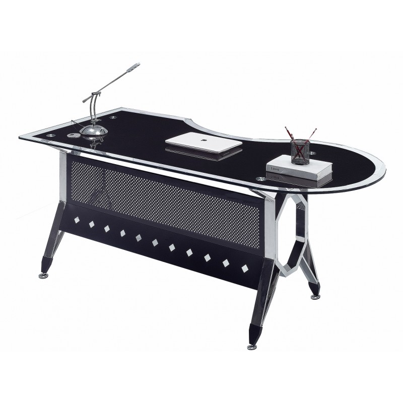Mesa de oficina COLOGNE, forma a izquierda, vidrio templado negro, 180 x 85 cms