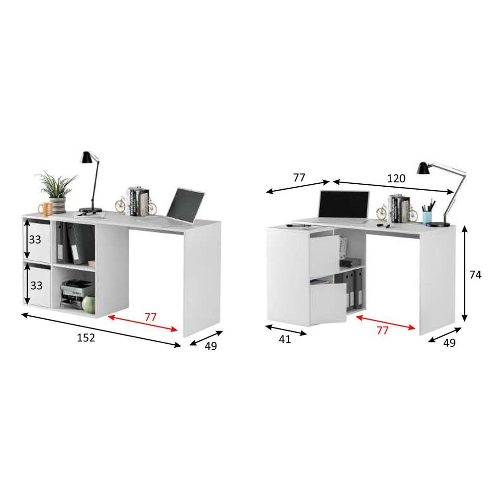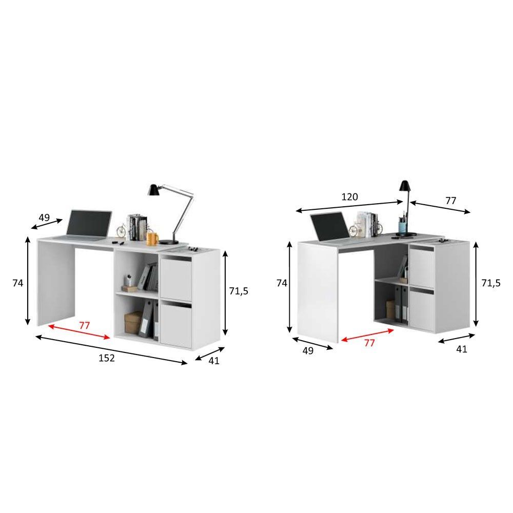 Con su diseño angular o recto, esta mesa escritorio es reversible. Puedes montarla a tu elección, ya sea a la izquierda o a la derecha, adaptándola perfectamente al espacio disponible en tu hogar o oficina. Esto te permite optimizar el espacio y maximizar la productividad sin renunciar a la comodidad.