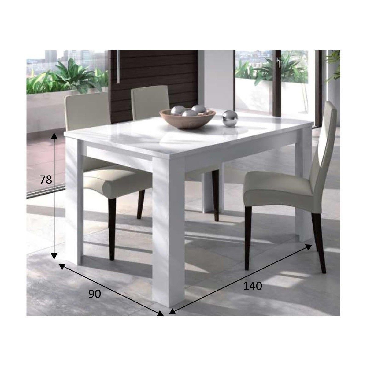 Mesa extensible Kendra blanco brillo 140 – 190 x 78 x 90 cm