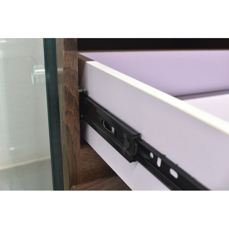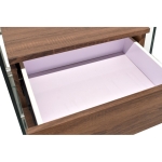 Cajones en MDF con acabado melamina: Los cajones proporcionan una solución oculta para almacenar tus pertenencias, manteniendo tu espacio limpio y ordenado. La melamina en color madera vintage añade un toque de nostalgia que se combina perfectamente con cualquier decoración.