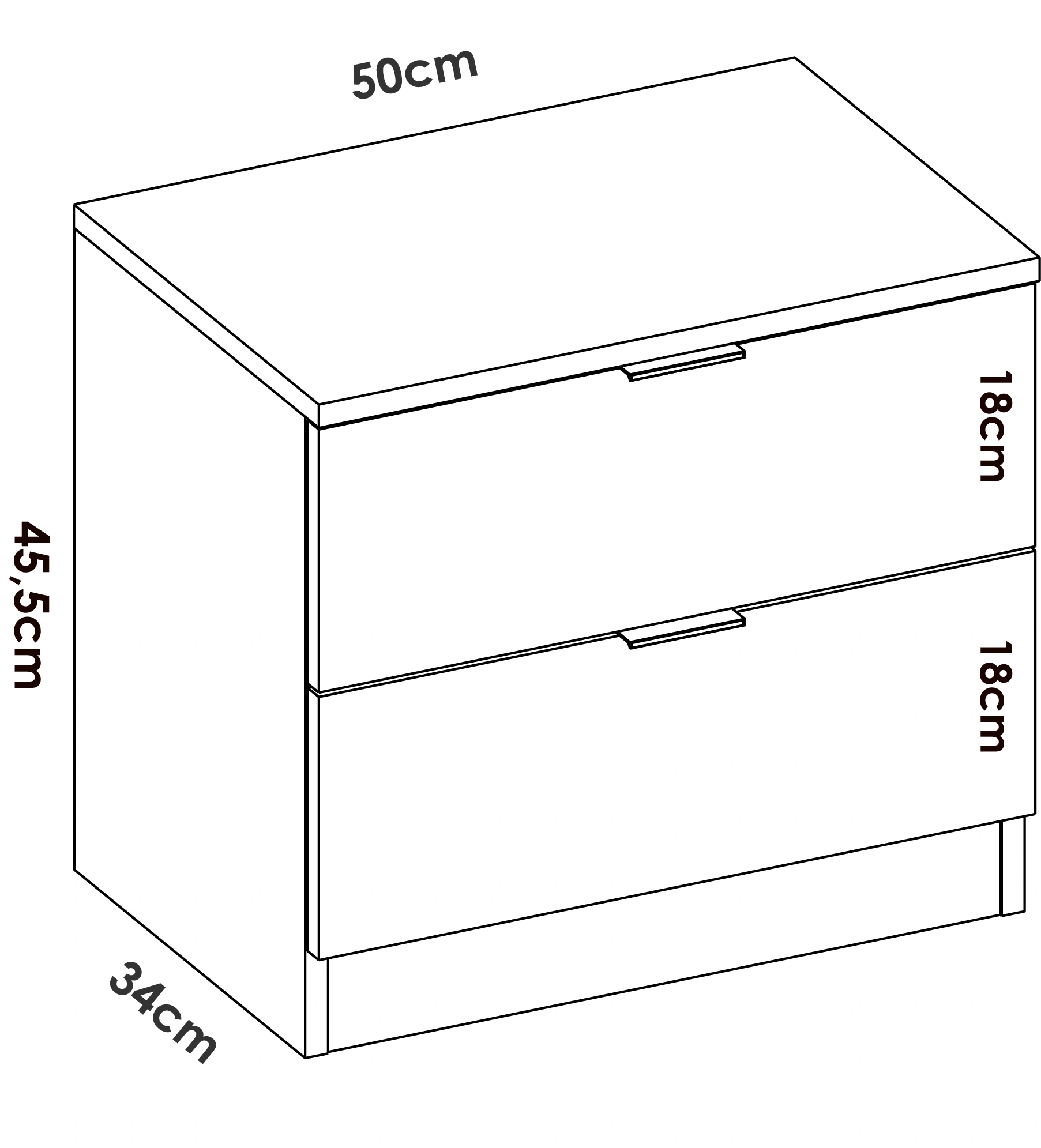 La Mesita de Noche LAGO presenta unas dimensiones compactas ideales para optimizar el espacio sin recargarlo: