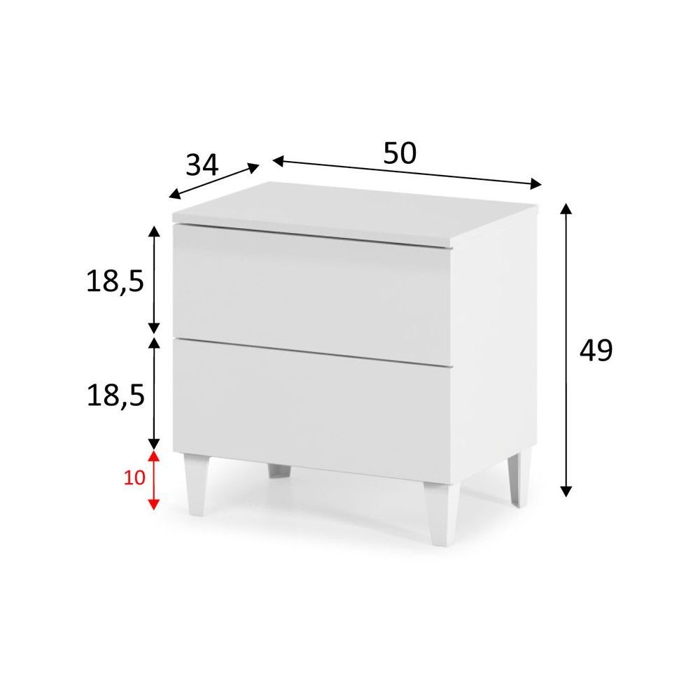 Con sus patas en punta y dos amplios cajones, esta mesita de noche ofrece un diseño moderno y práctico. Ideal para cualquier estilo decorativo, desde el nórdico hasta el contemporáneo.