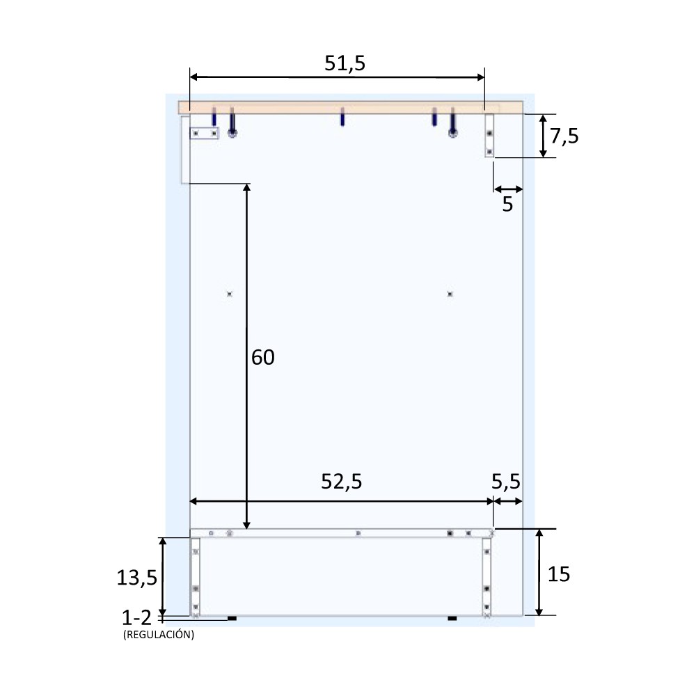 - Hueco para horno: 57 cm (ancho) x 60 cm (alto) x 60 cm (fondo)