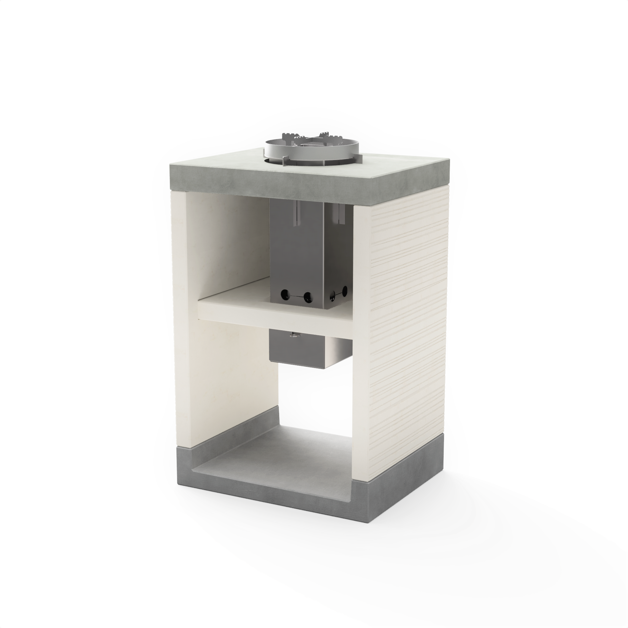 El VENIT ROCKET 59 es una estufa de leña de doble cámara con un diseño moderno y elegante en blanco y gris con detalles texturizados en concreto. Su robusta base inferior de hormigón aporta estabilidad y durabilidad. Alcanza rápidamente altas temperaturas, permitiéndote cocinar a la perfección con ollas, woks, planchas y otros accesorios para fogones.