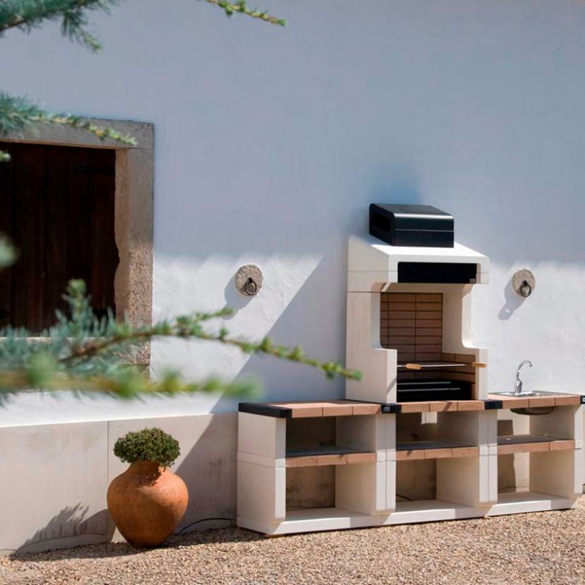 Modulo Bancada Durango en hormigón blanco y ladrillo con Fregadero y Grifo