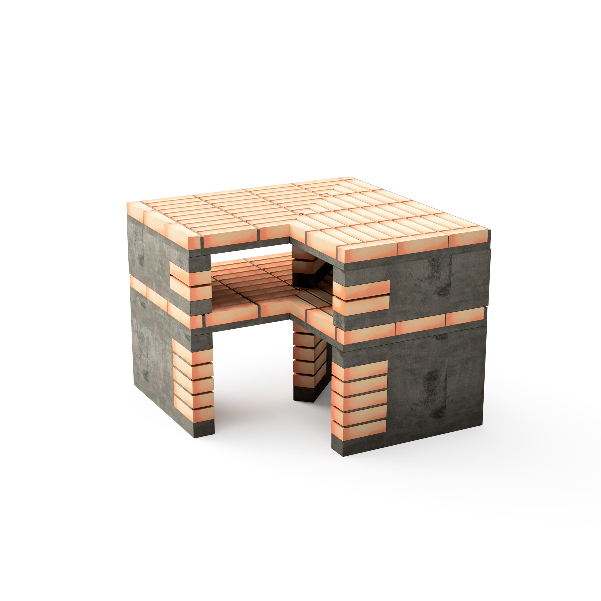 Modulo bancada Esquina California XL Plus en ladrillo naranja y hormigón con 86,5 x 64 x 81h cm