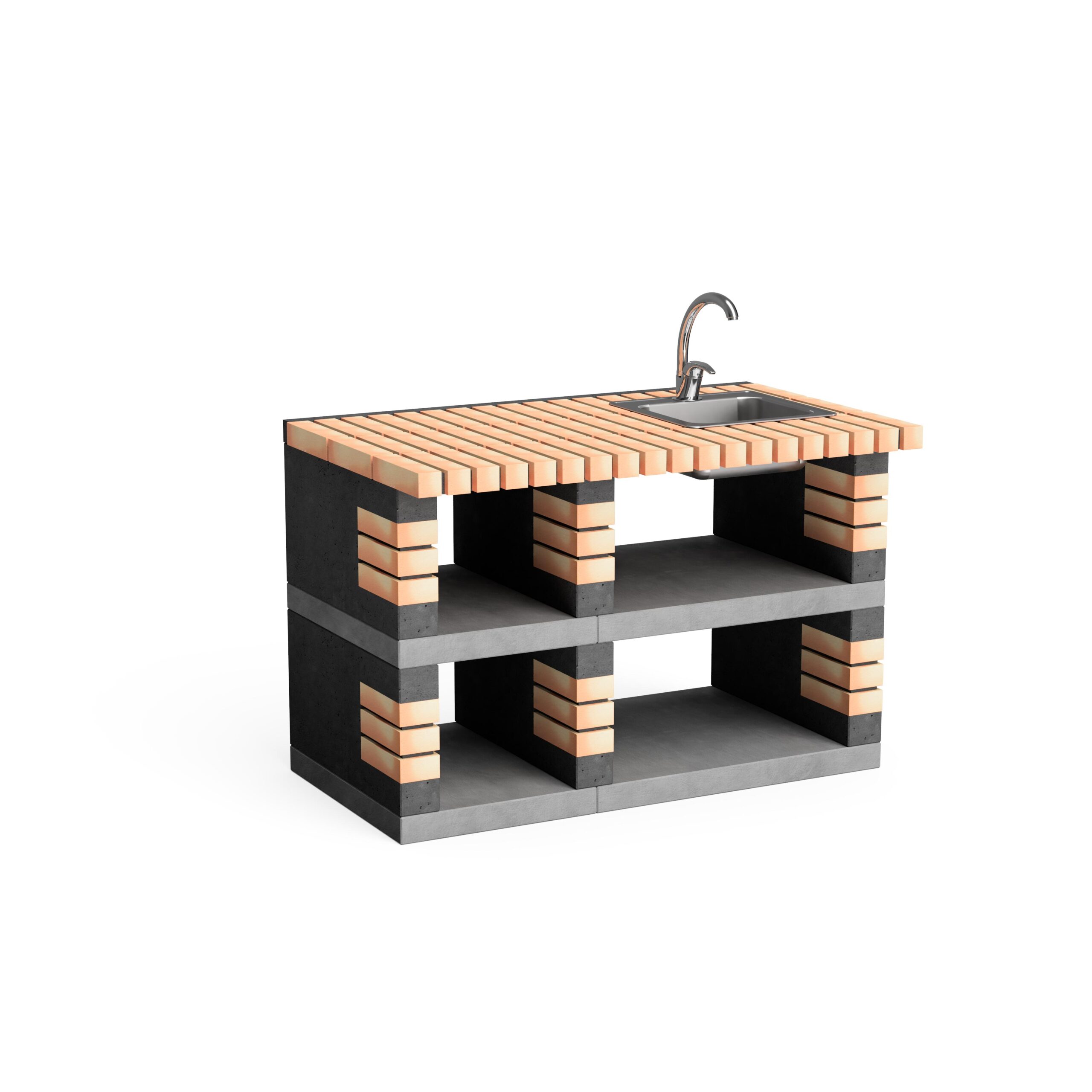 Modulo Bancada fregadero Pan American en ladrillo naranja y hormigón