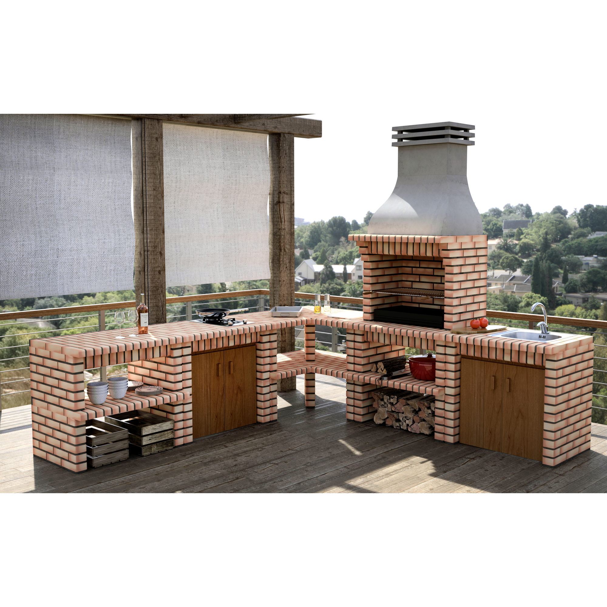 El módulo Luxor es un soporte lateral fabricado con hormigón refractario y ladrillo ligero de color naranja claro. Su diseño incluye una repisa inferior de ladrillo para mayor funcionalidad. Su acabado listo para usar elimina la necesidad de pintar, lo que te permite disfrutar del estilo moderno de este módulo desde el primer momento.