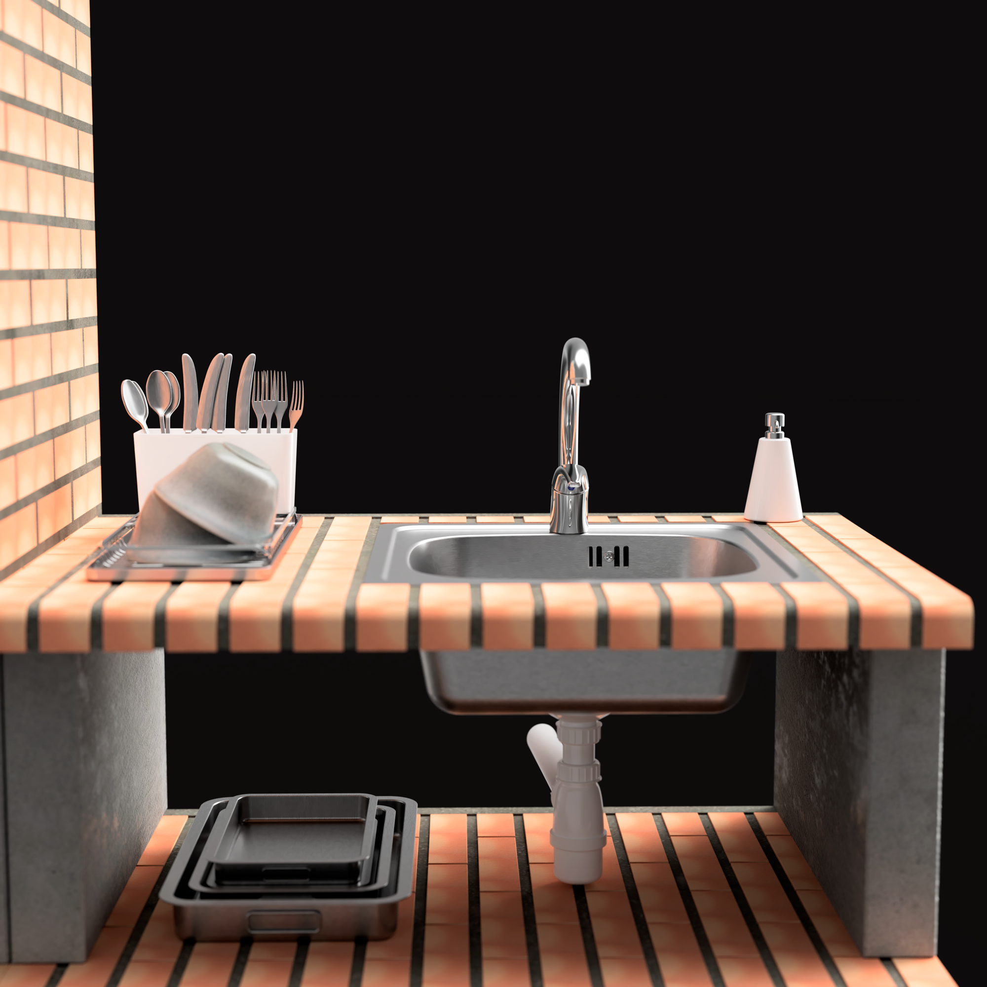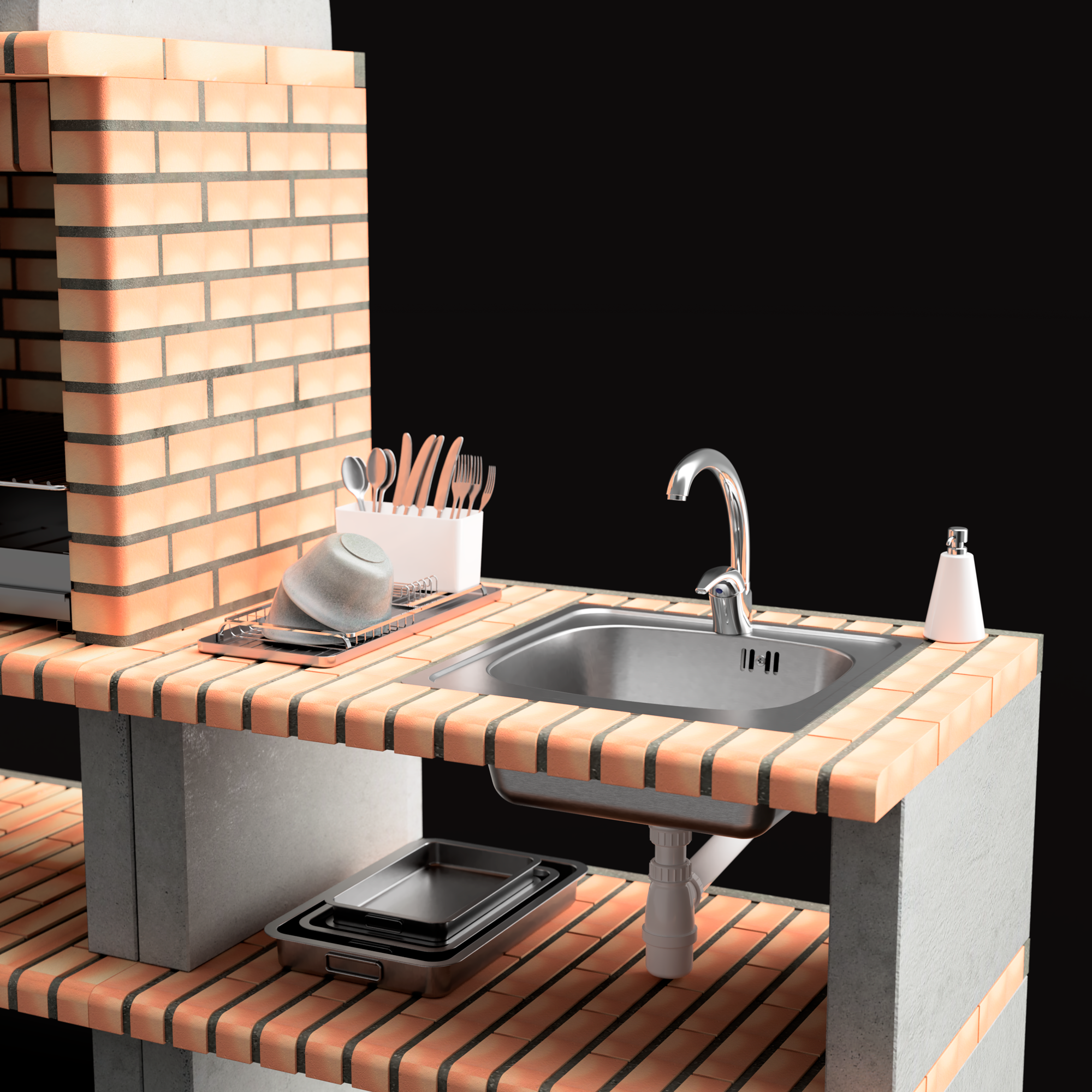 Modulo Bancada Paellero en ladrillo y hormigón con 95 x 70 x 80h cm