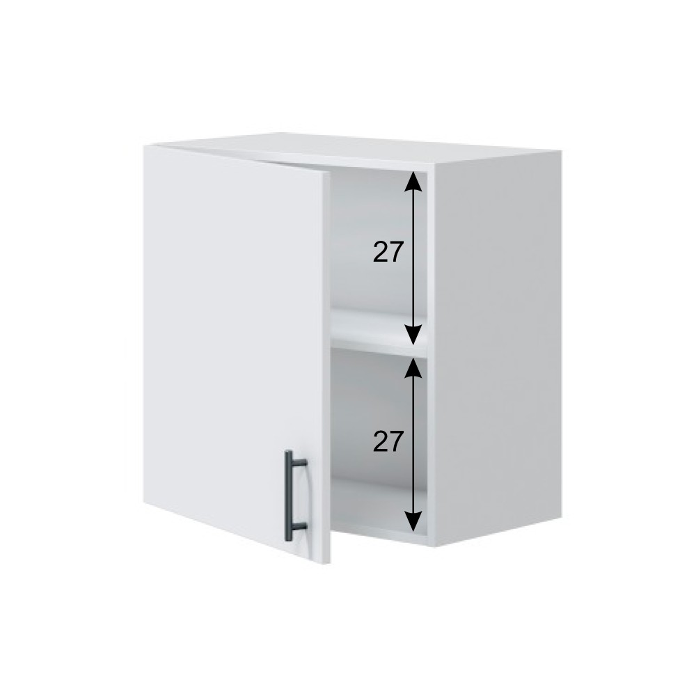 Gracias a su ancho de 60 cm, este módulo ofrece una capacidad de almacenamiento superior. En su interior encontrarás un estante fijo que divide el espacio en dos amplios compartimentos de 27 cm de alto, ideales para organizar: