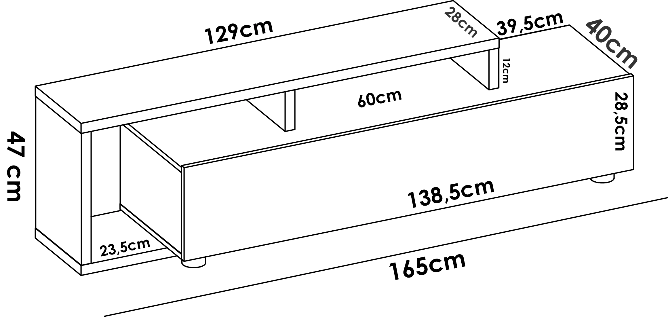 - Medidas: 47 cm (alto) x 165 cm (ancho) x 40 cm (profundidad).