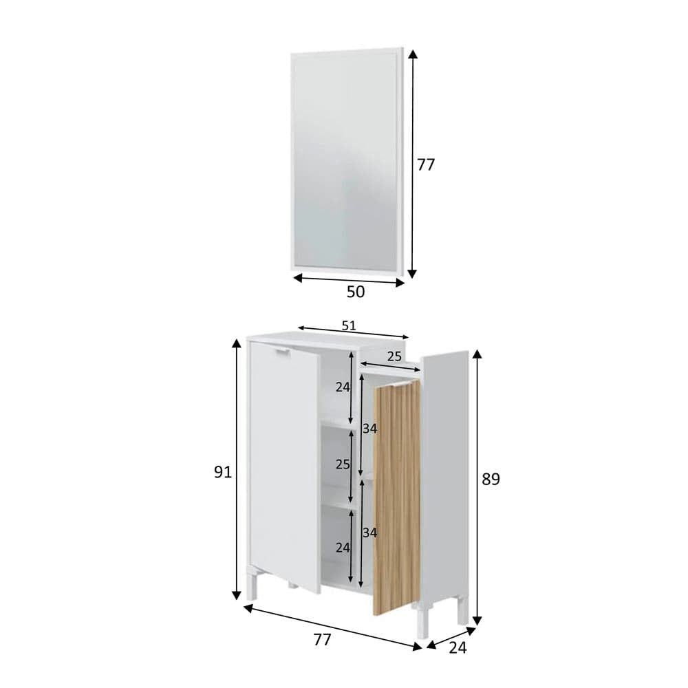 Mueble de entrada recibidor con espejo Ethna Blanco Artik – Natur 77 x 91 x 24 cm