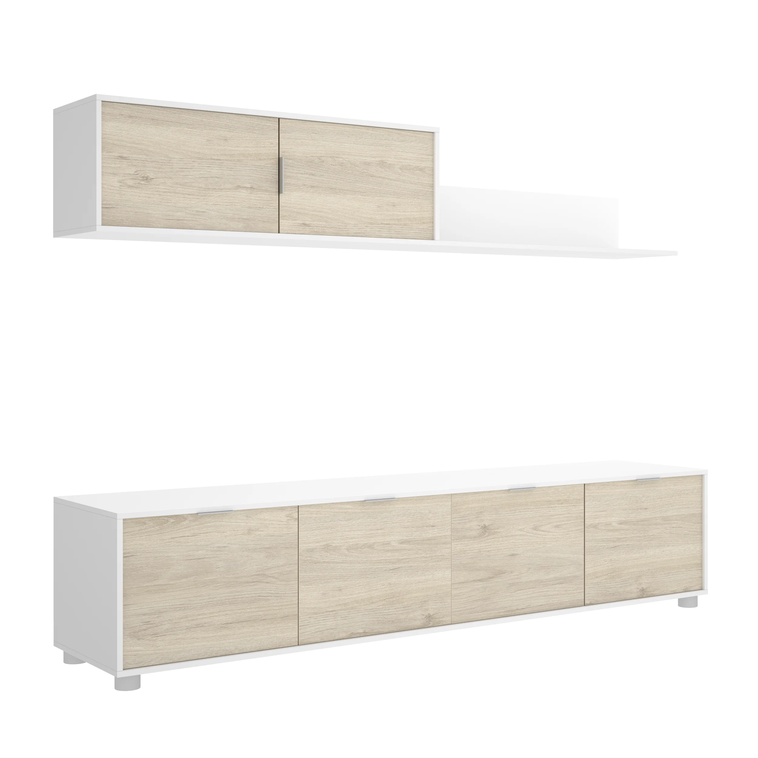 ¡Renueva tu salón con el Salón TV LIMA! Este conjunto de dos piezas ha sido diseñado para maximizar la funcionalidad y el estilo incluso en los espacios más reducidos. Su combinación de blanco puro y roble natural aporta una estética moderna y elegante que se adapta a cualquier decoración.