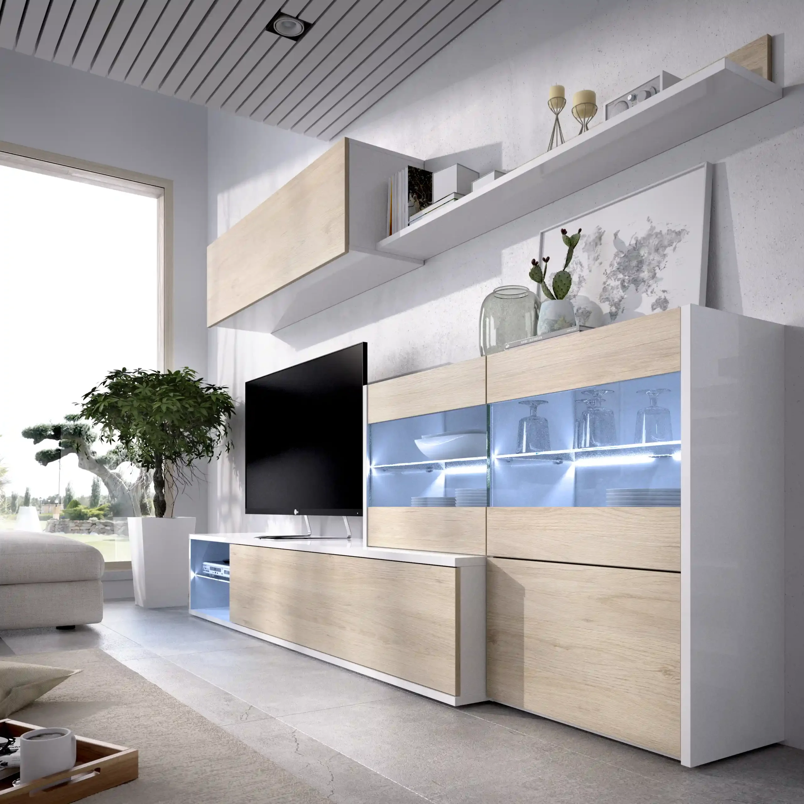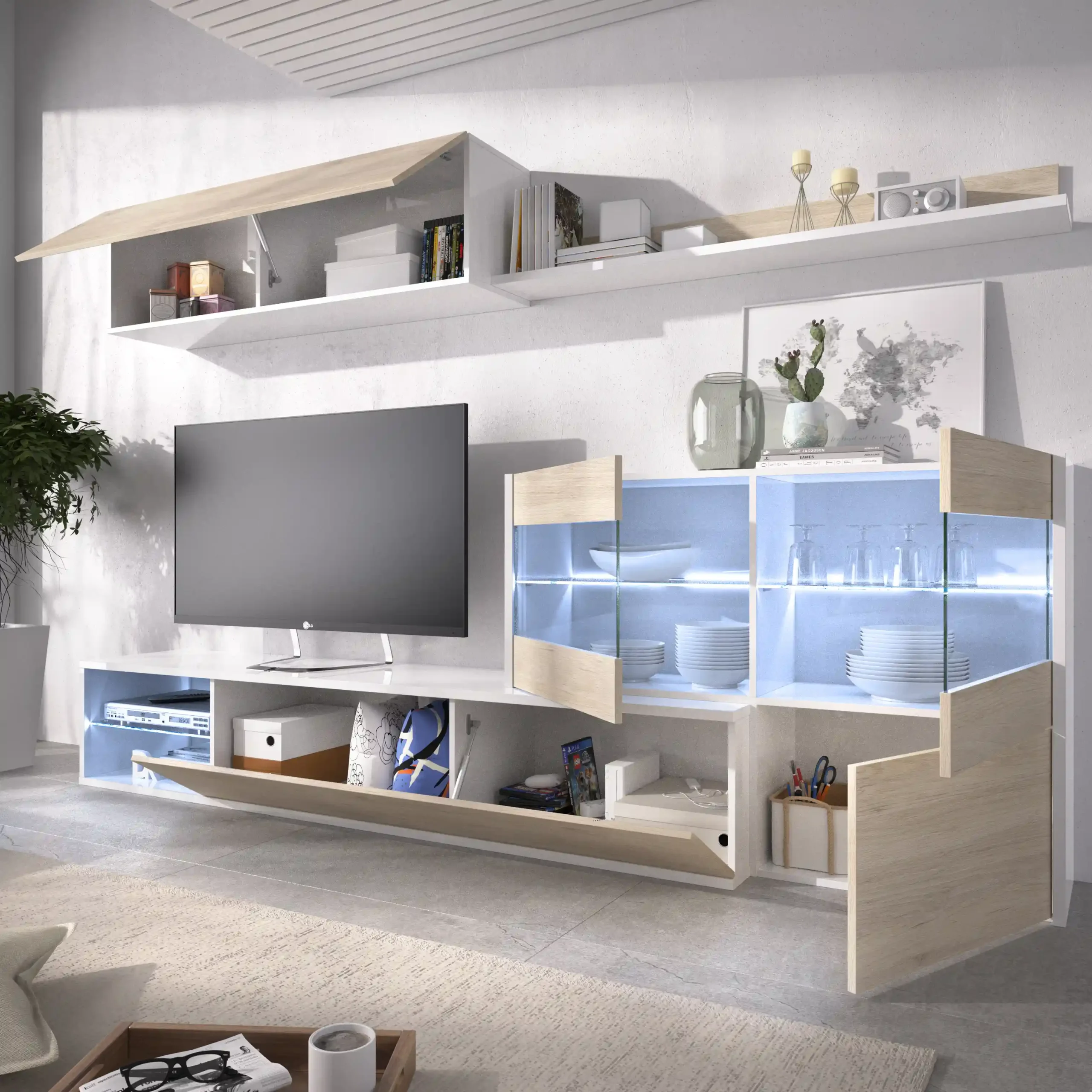 Mueble de Salón Composición TV con Luz Led y Vitrina UMA