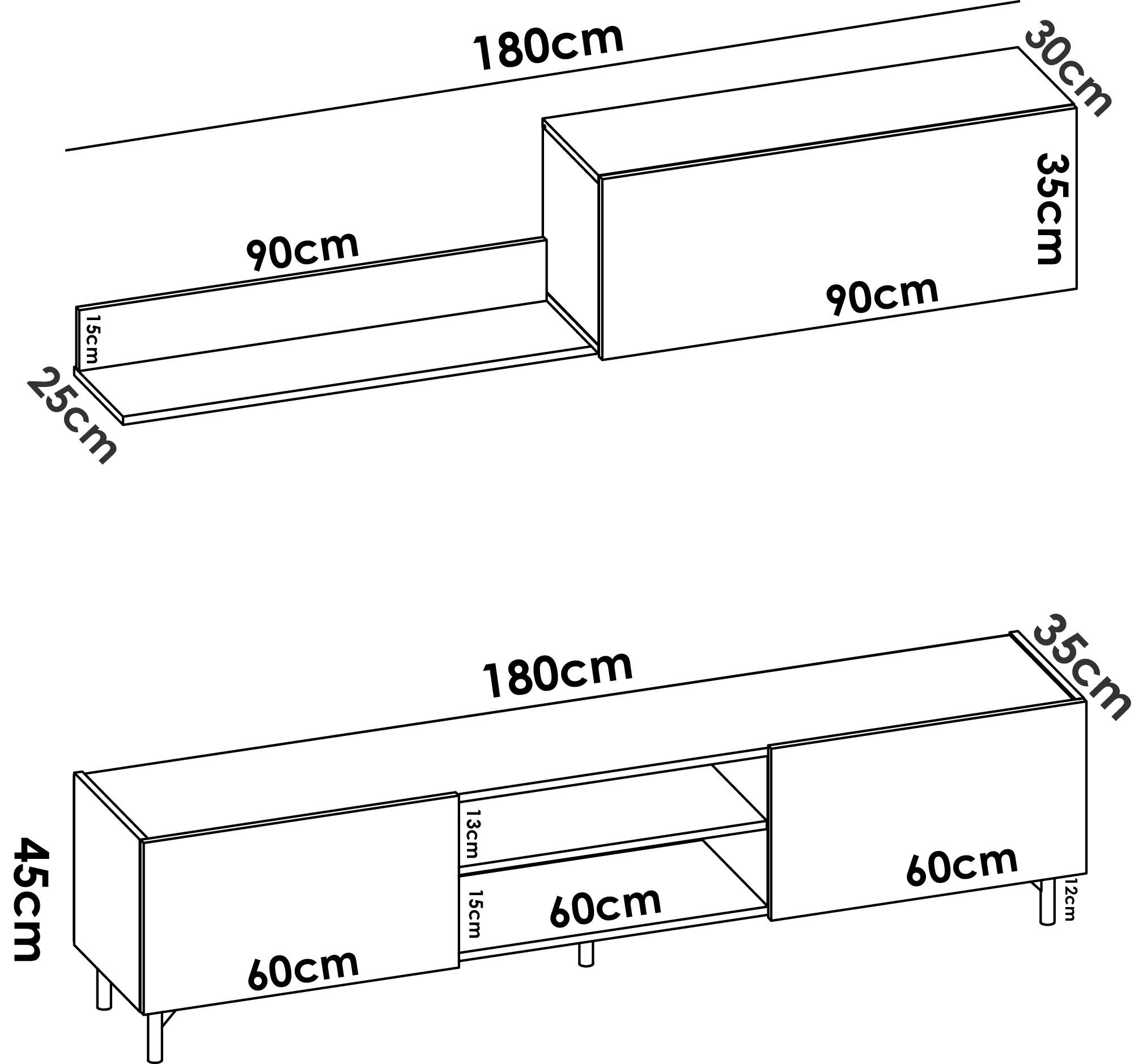 - Composición Total (aprox.): 183 cm (ancho) x 180 cm (alto) x 35 cm (profundidad)