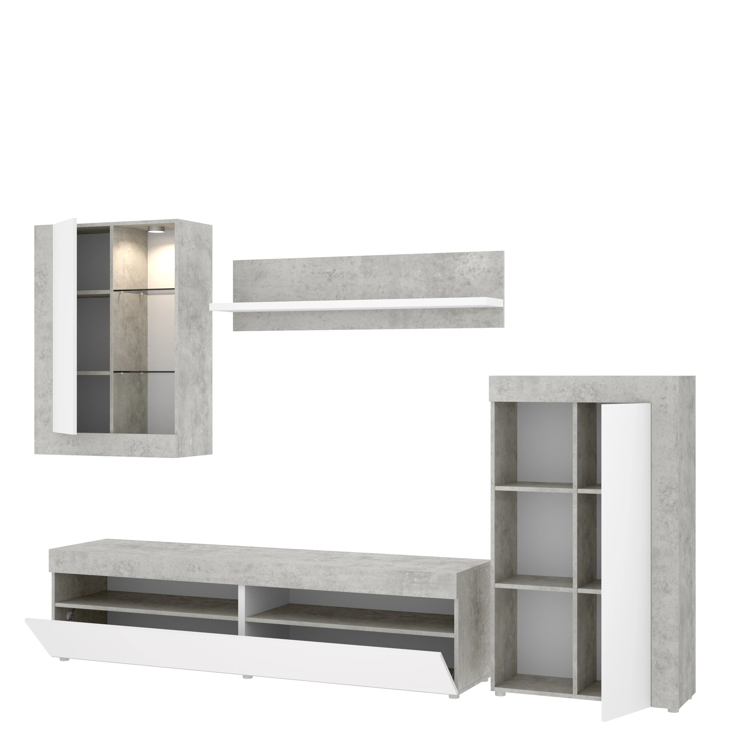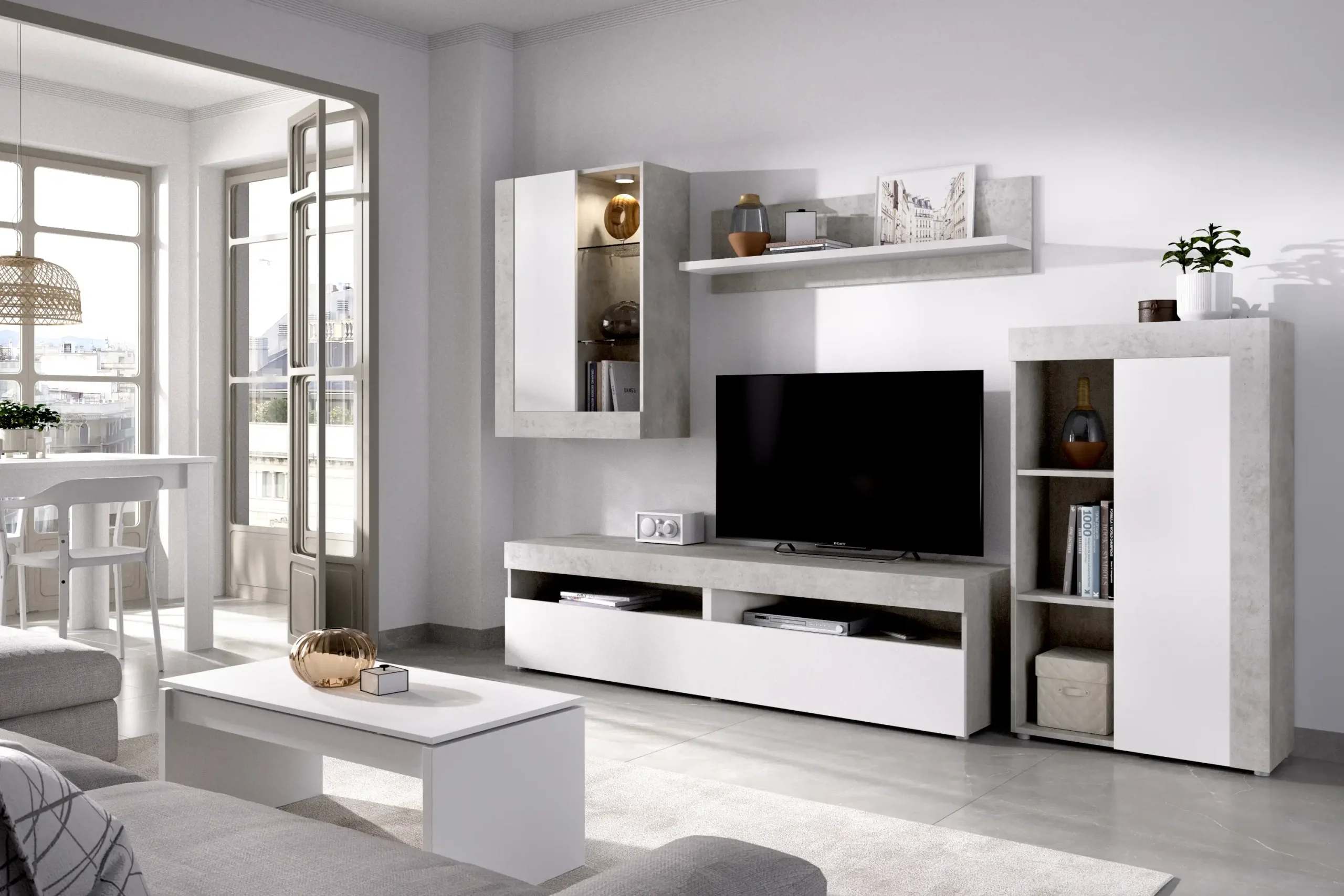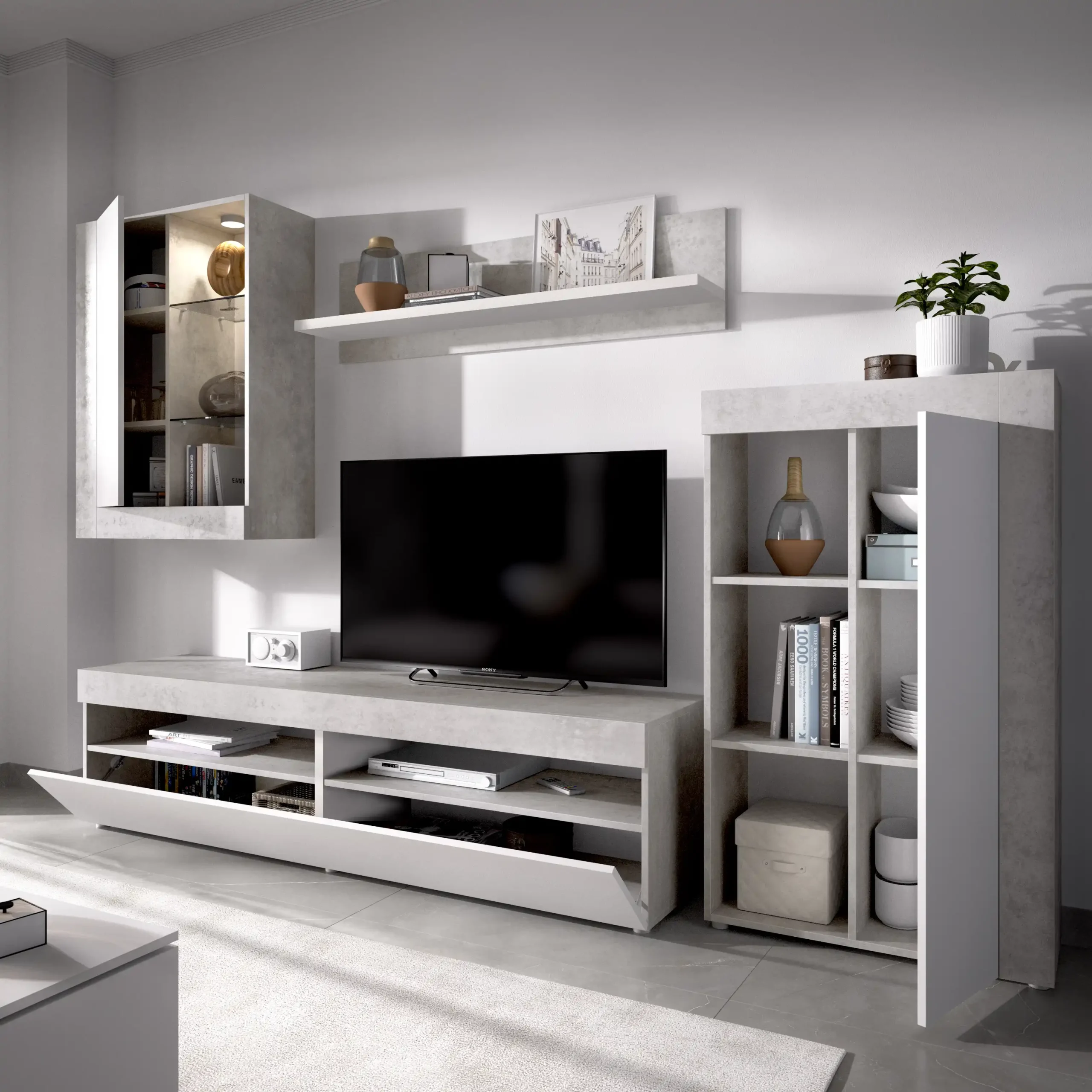 Mueble de Salón TV con Vitrina y Leds