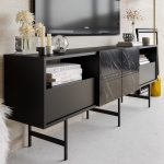 Diseño de vanguardia: Nuestro mueble de TV de 2 puertas se caracteriza por su estética contemporánea, ofreciendo una apariencia sofisticada en cualquier sala de estar.