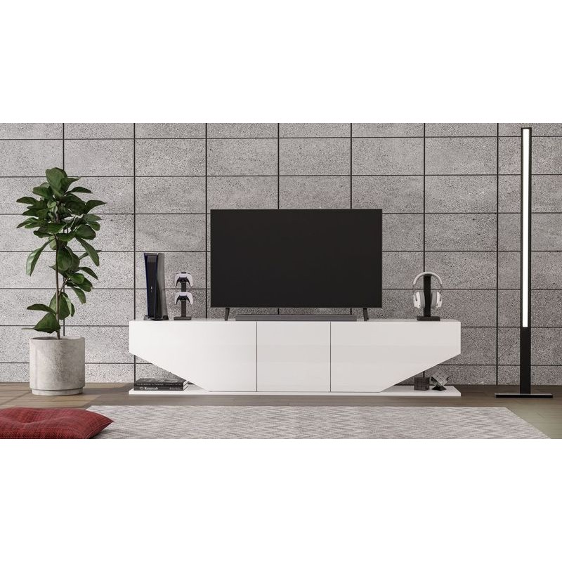 Mueble de TV VIOLET, biIaminado blanco brillo, 180 cms.