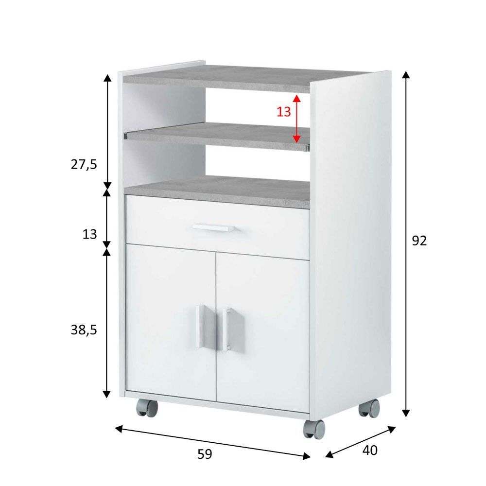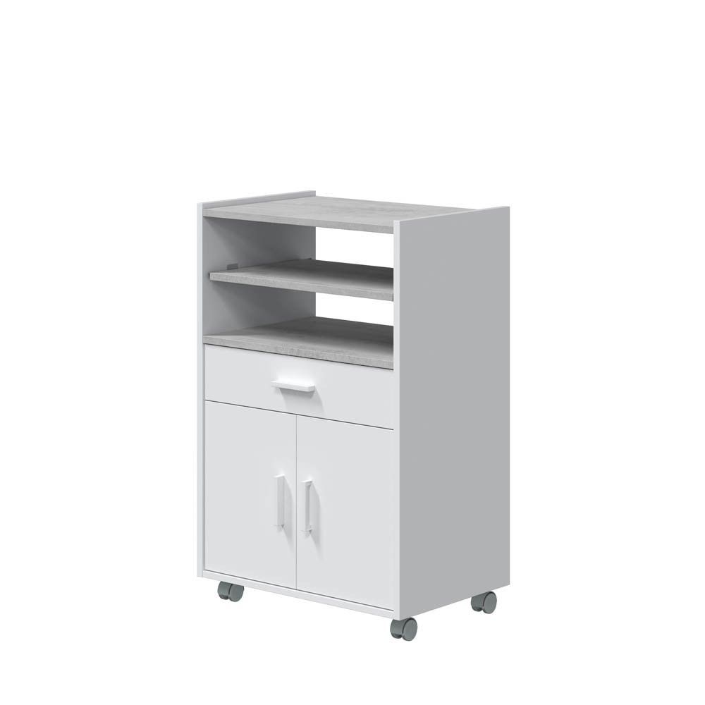Este auxiliar para microondas no solo ofrece un espacio adicional en tu cocina, sino que también se integra estilísticamente con el resto del mobiliario. Con acabado Blanco combinado con Cemento, este mueble es tanto funcional como atractivo.