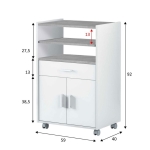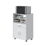 Mueble auxiliar de cocina para microondas, diseñado con ruedas para una fácil movilidad. Con una bandeja extraíble en la parte superior, un cajón en el centro y 2 puertas en la base, este mueble es perfecto para organizar y proteger tu microondas.
