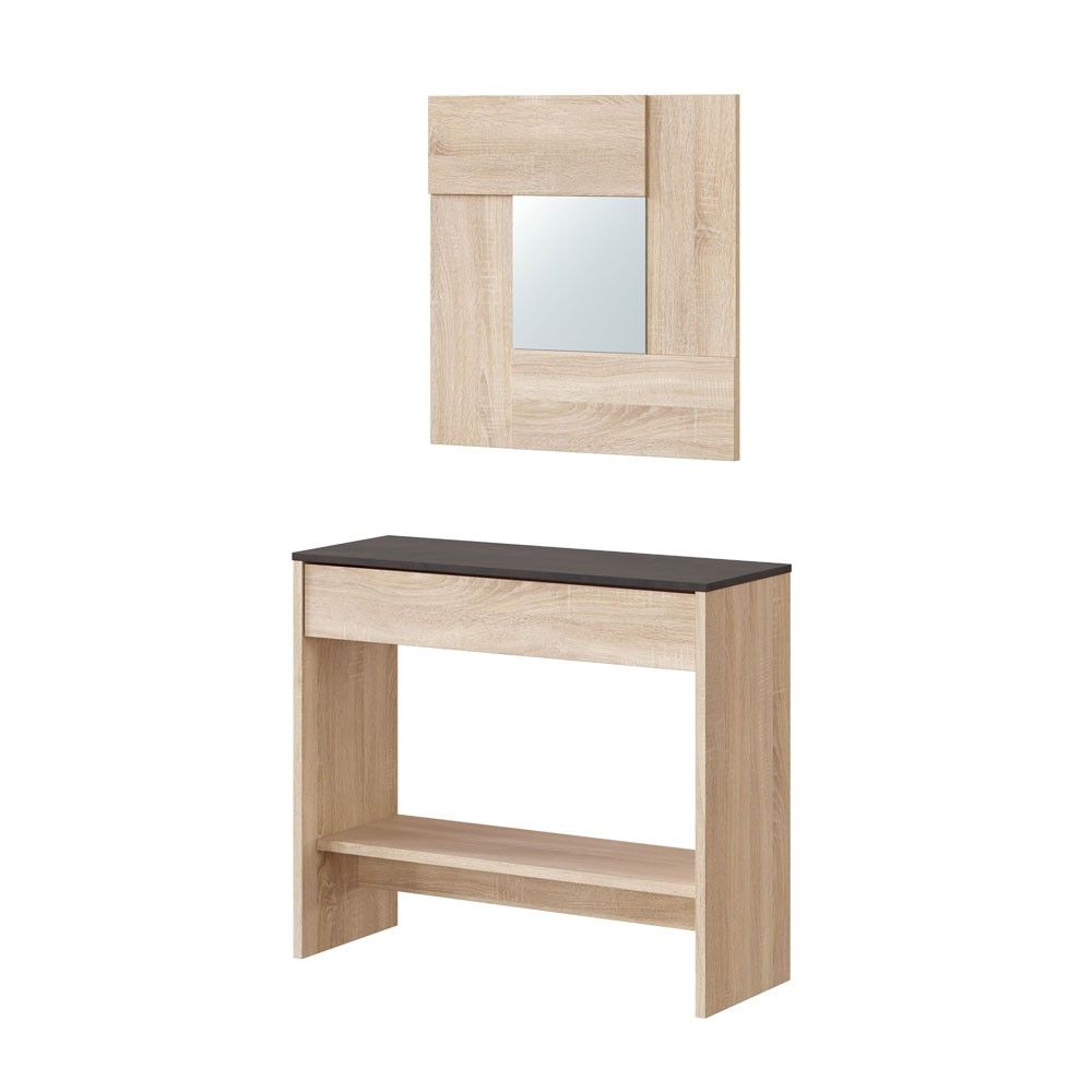Mueble recibidor 1 cajón con espejo Oxys roble – óxido 92 x79 x 33 cm