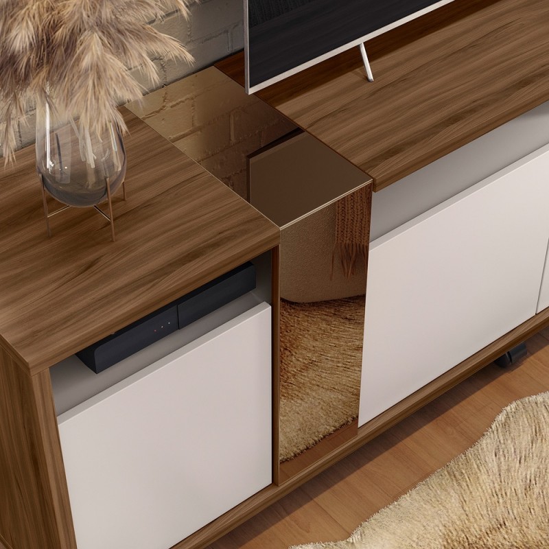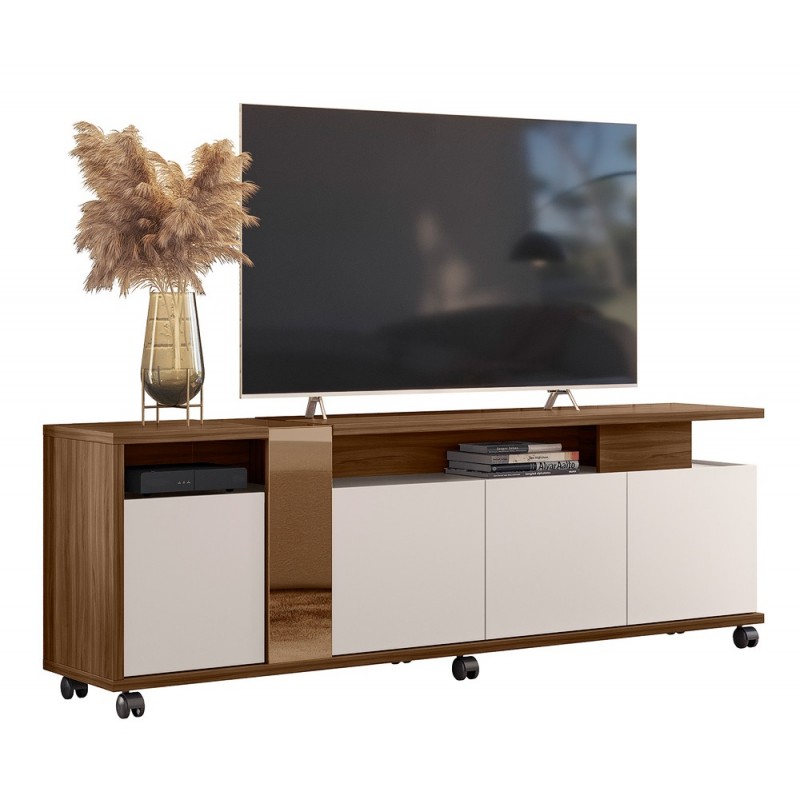 Mueble TV NEW CRISTAL, nogal y blanco roto, 183 cms.