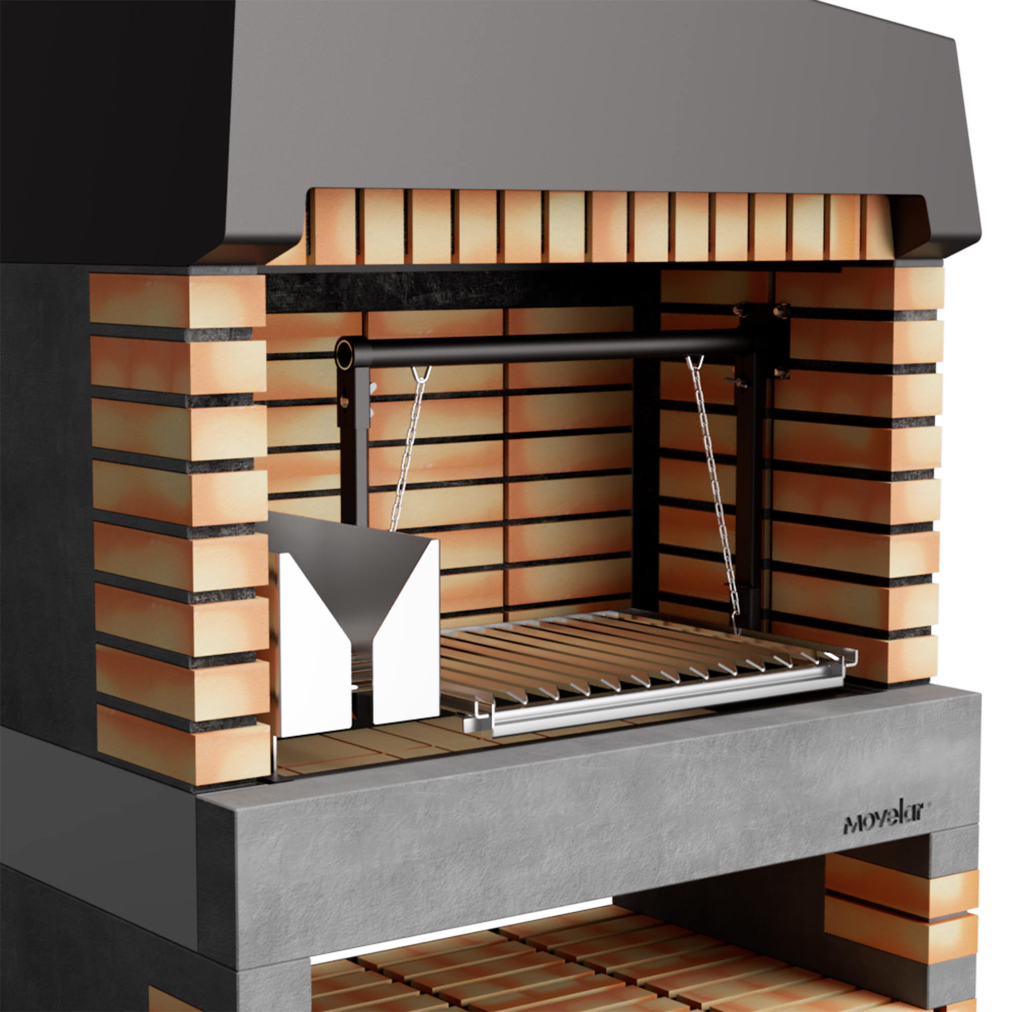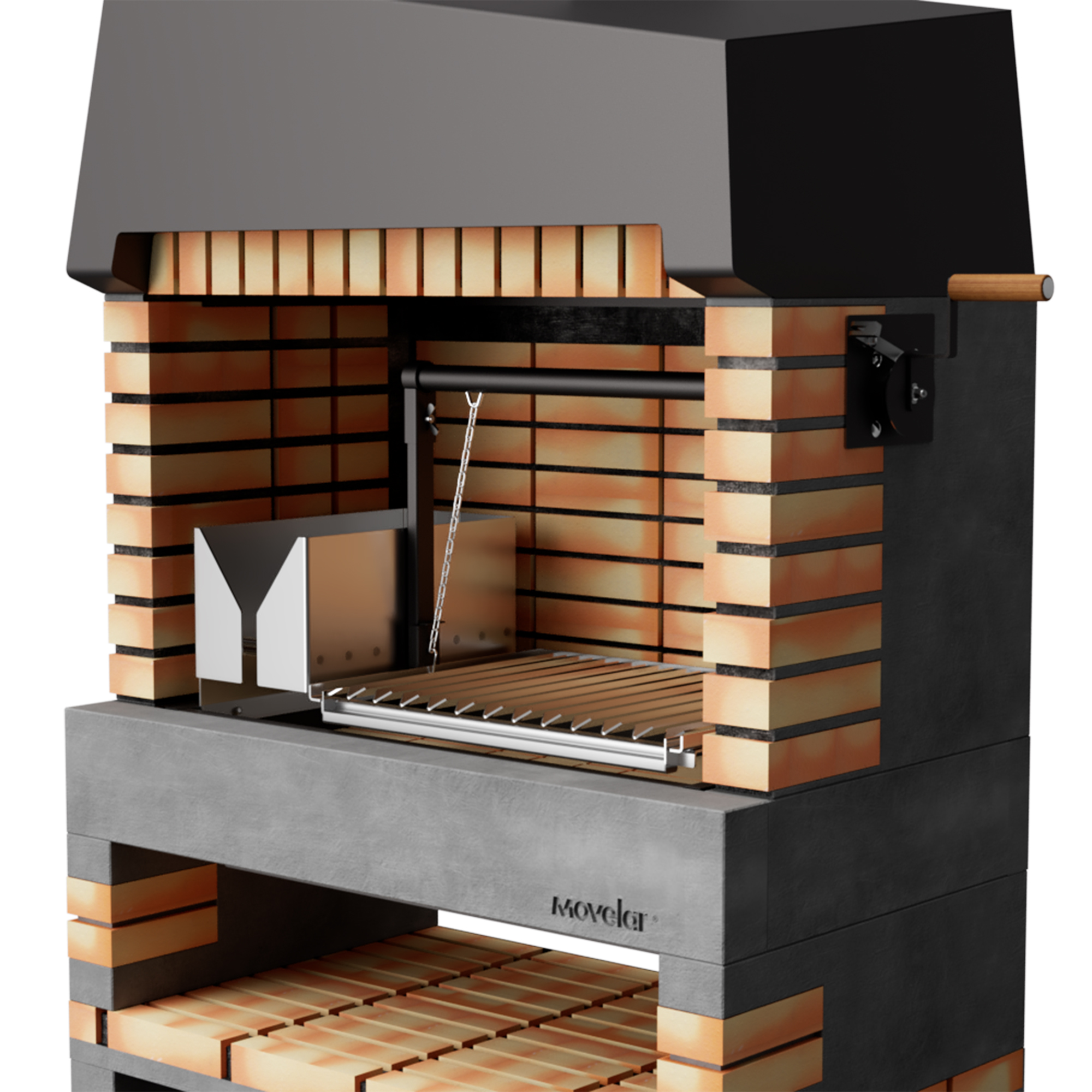* Construcción resistente y duradera con ladrillo y hormigón refractario.