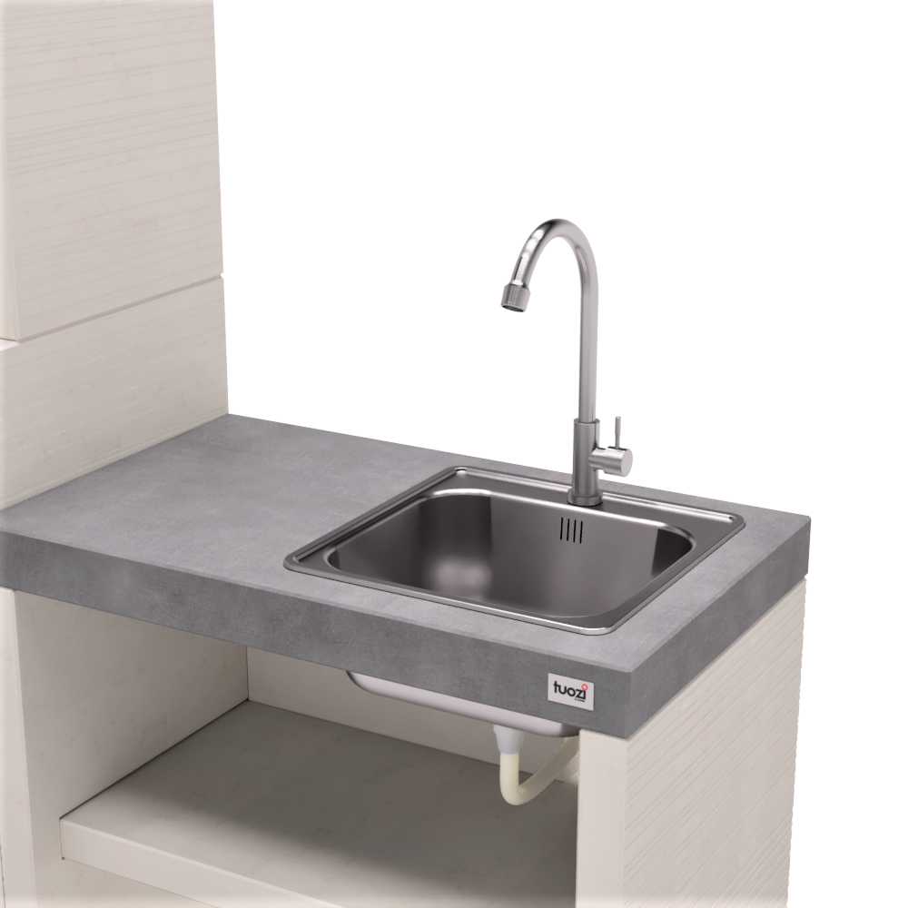 El PACK 17 – VENIT FLEX Barbecue combina la elegancia del diseño moderno con la funcionalidad de un barbacoa excepcional. Su estructura, fabricada en hormigón blanco y gris con piezas laterales texturizadas y una base en hormigón blanco liso, aporta un toque sofisticado a cualquier espacio exterior. El corazón de este pack es el robusto parrilla de acero pintado aluminizado, de 46,5 x 37 cm, ideal para preparar deliciosas comidas al aire libre. Completando la experiencia, incluye un práctico estante metálico de 54,5 x 45,5 cm y una cajón para recoger las cenizas, facilitando su limpieza y mantenimiento. Además, el pack incorpora un fregadero PLAN/VENIT 1 SINK/TAP, fabricado en hormigón blanco y gris con piezas laterales texturizadas y una base en hormigón blanco liso, complementado con un elegante fregadero de acero inoxidable. Este fregadero, compatible con la serie PLAN y VENIT, te permitirá tener a mano el agua para limpiar tus manos o utensilios durante la preparación de las comidas.