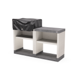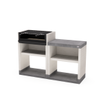 El PACK 2 – VENIT -Barbecue te ofrece una experiencia culinaria al aire libre única e inolvidable. Fabricado con materiales de alta calidad, este conjunto combina la elegancia del hormigón texturizado con la robustez del acero inoxidable. Su parrilla grande de 64x38cm es perfecta para cocinar para toda tu familia y amigos. El módulo PLAN/VENIT 0 te proporciona un soporte adicional para tus utensilios y el cover corto negro protege tu barbacoa de los elementos. Disfruta de una cocción excepcional con carbón o leña gracias a su sistema de combustión diseñado según las normas EN.