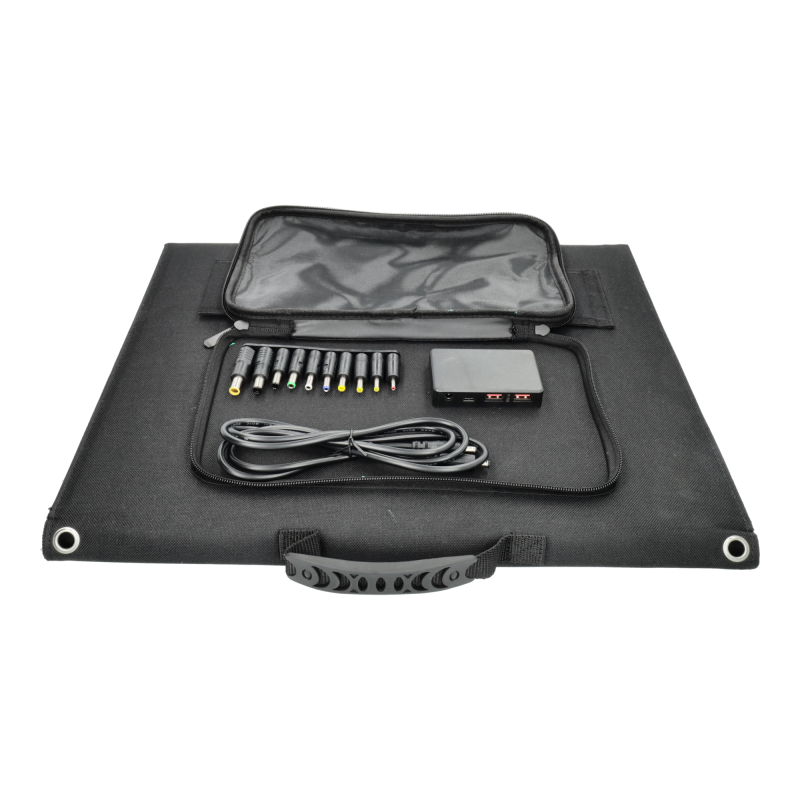 1) Panel solar con forma de maletín negro 100W plagable
