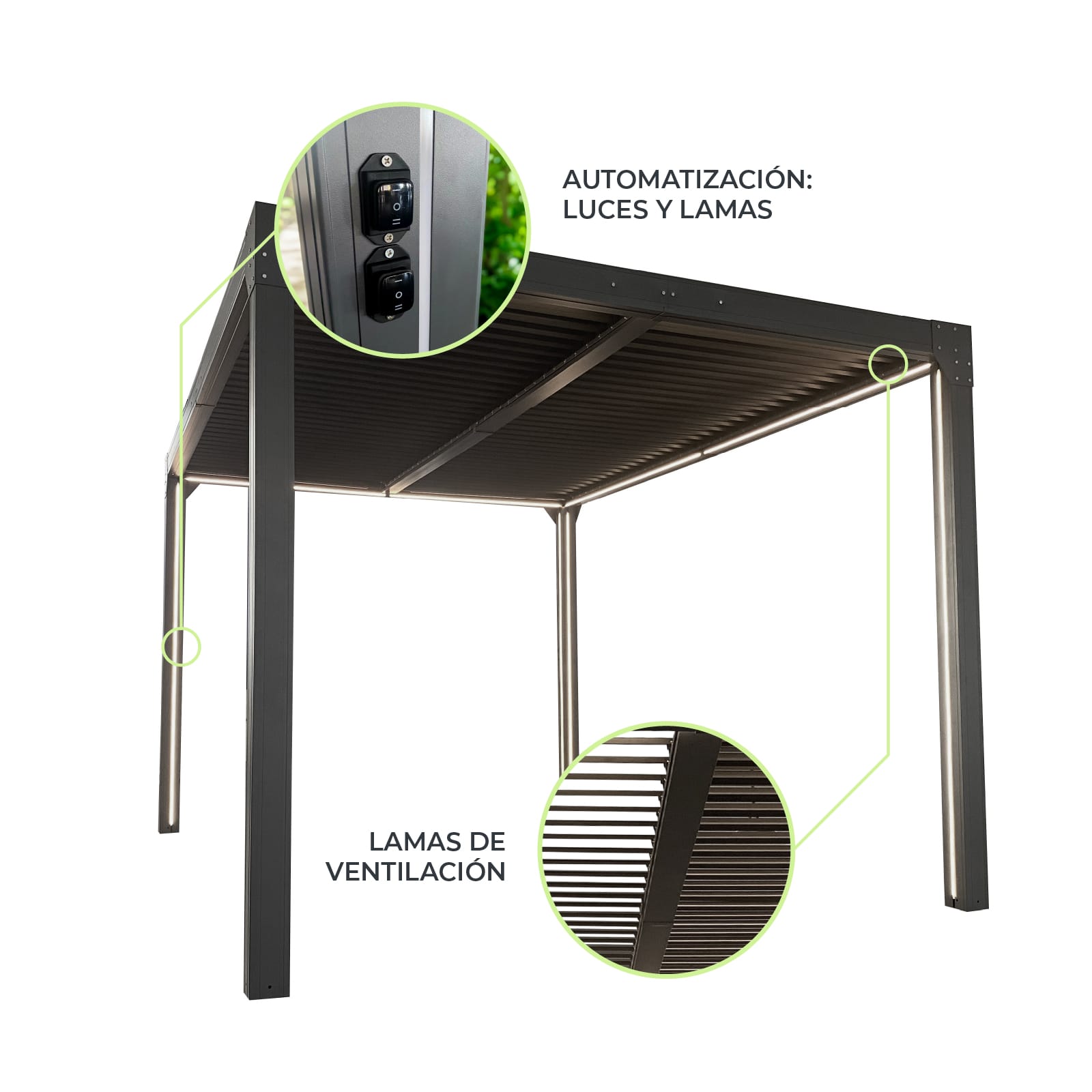 Pérgola de jardín automatizada 4x3m (12 m2) Somerset antracita