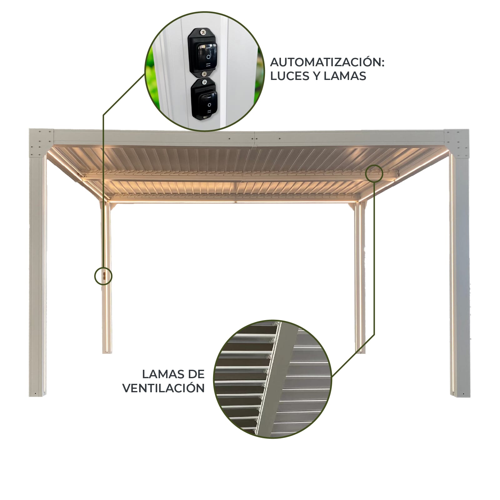 Pérgola de jardín automatizada 4x3m (12 m2) Somerset blanca