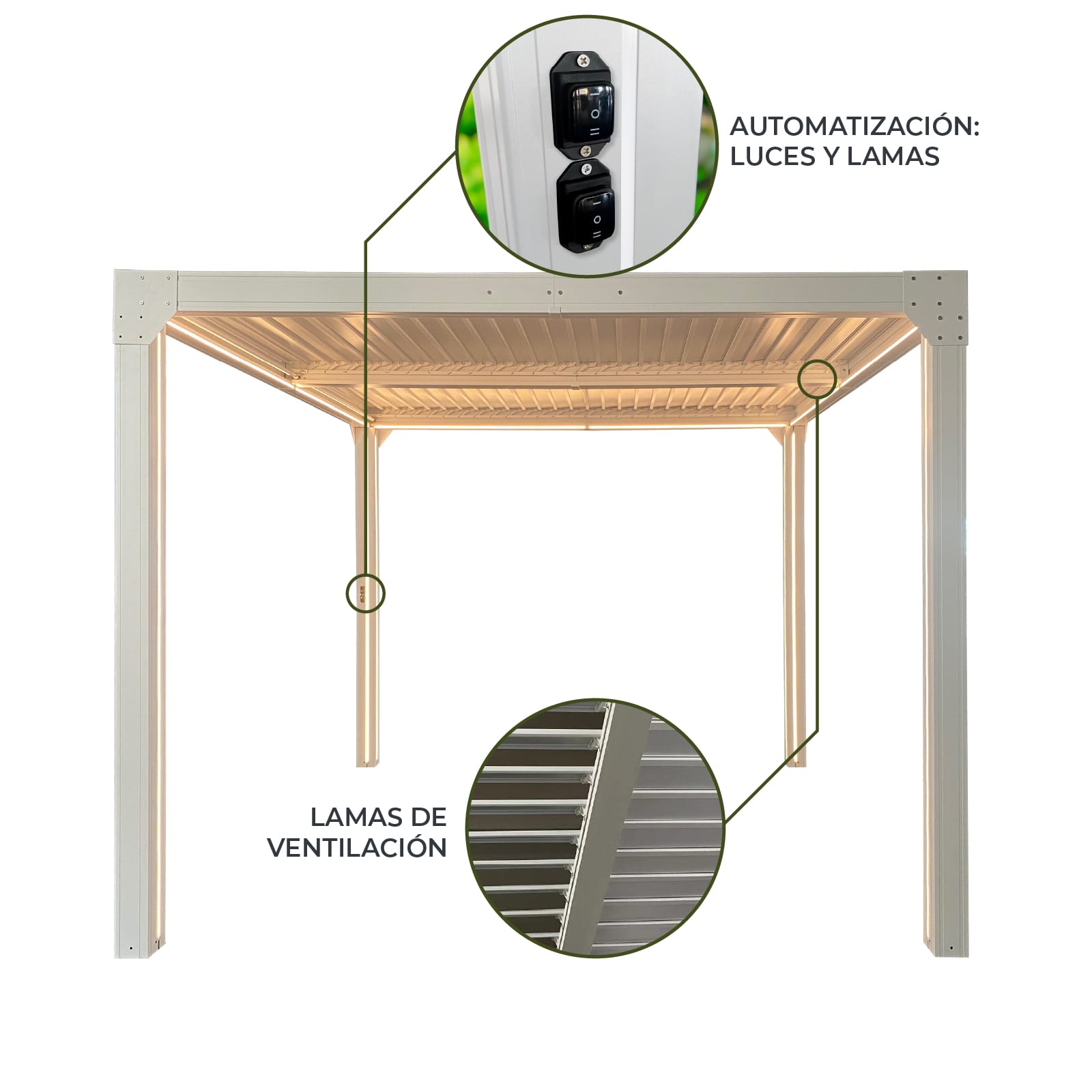Pérgola de jardín automatizada Somerset blanca 3x3m (9 m²)