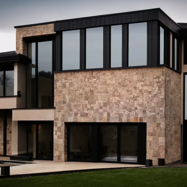 Dale un nuevo carácter a la fachada de tu hogar o edificio con un revestimiento que mezcla naturalidad y diseño moderno, destacando en cualquier entorno arquitectónico.