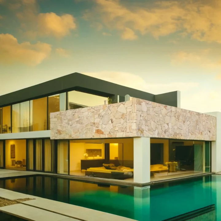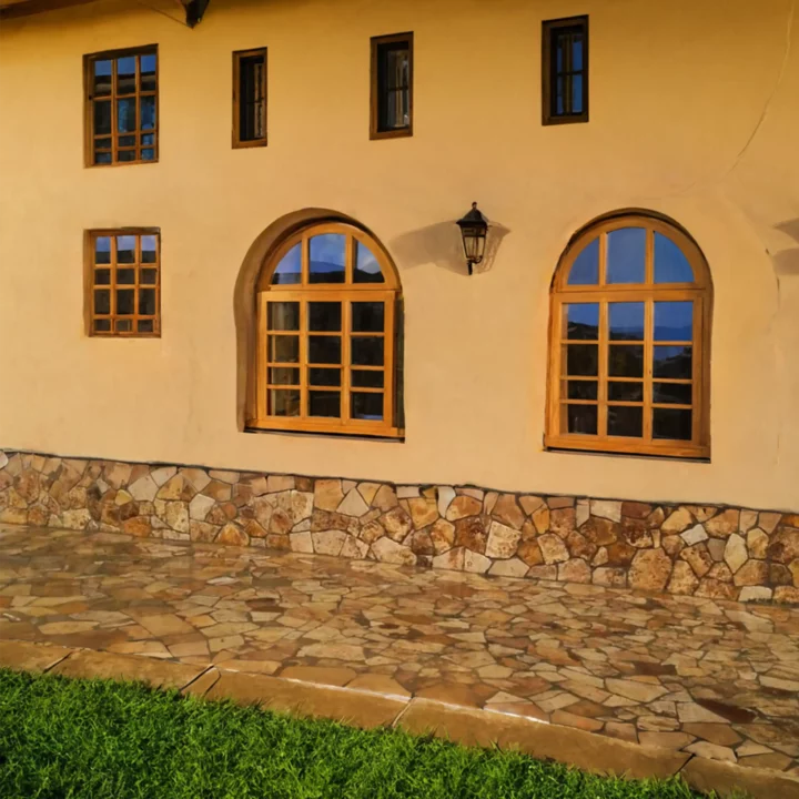 Interiores: Ideal para baños, cocinas y salones, donde su vibrante color y textura natural añaden calidez y sofisticación.