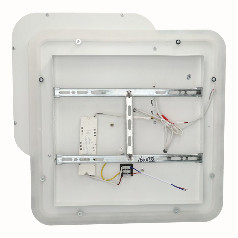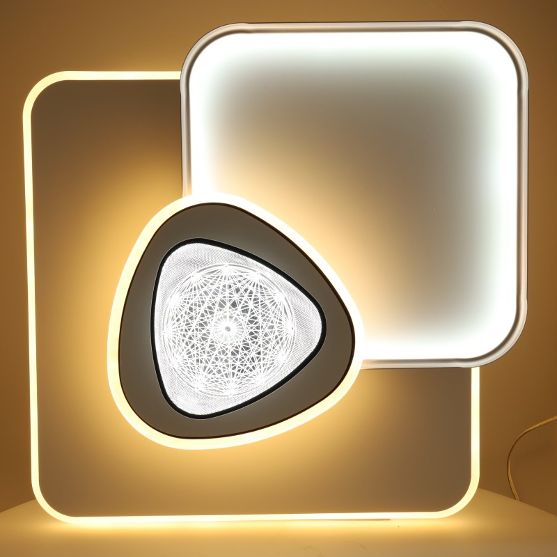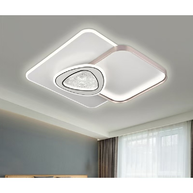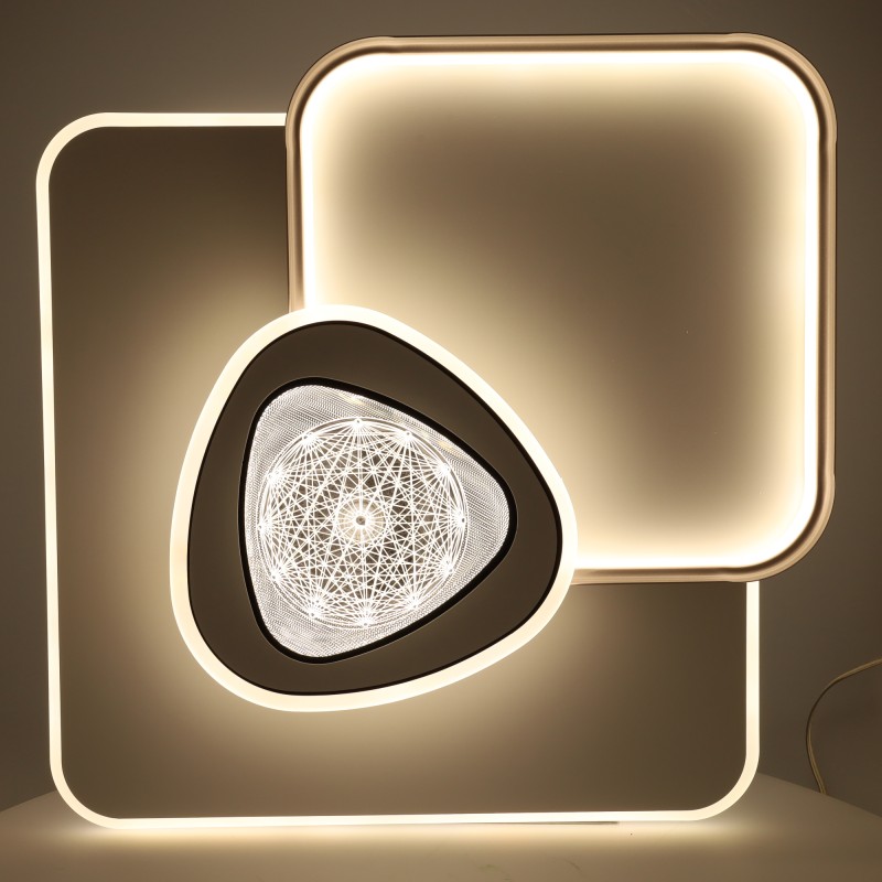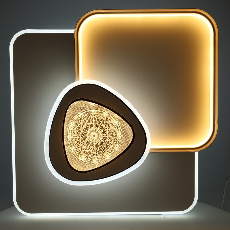 Plafón LED tridimensional borde blanco y metal CCT 70W 520x520mm