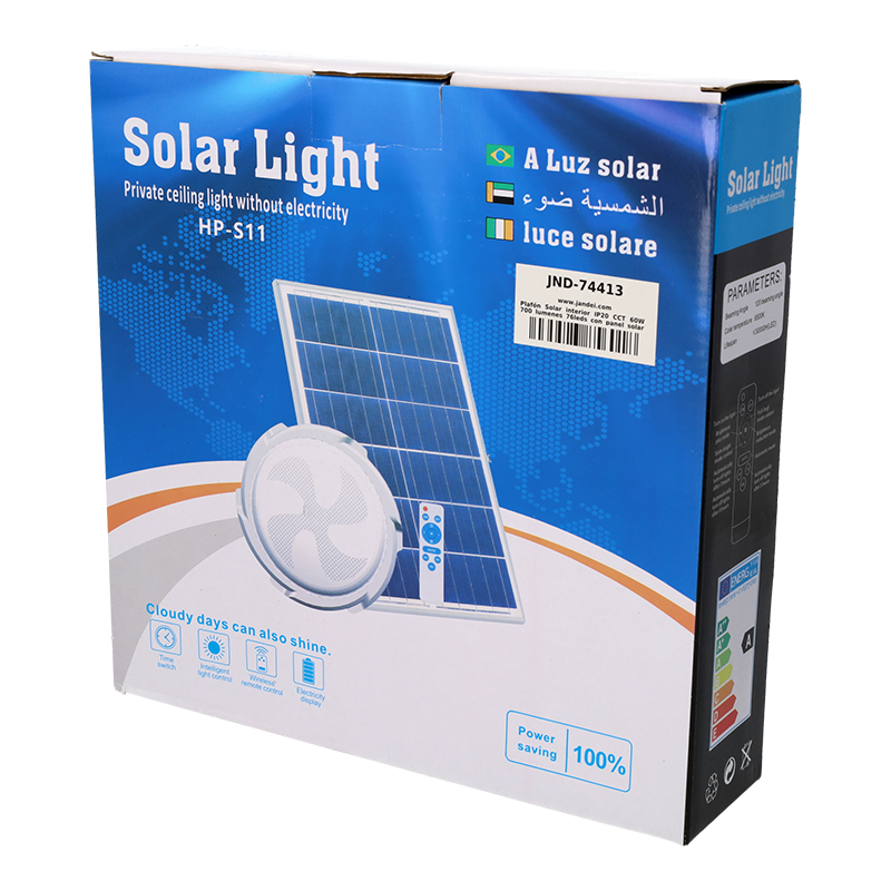 Plafón Solar interior IP20 CCT 60W 700 lumenes 76leds con panel solar separado con mando