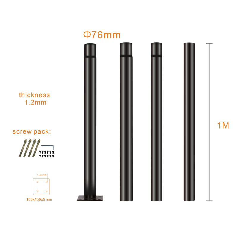 Poste con base cuadrada y tubo redondo fabricado en acero galvanizado de alta calidad de 1,2 mm de espesor.