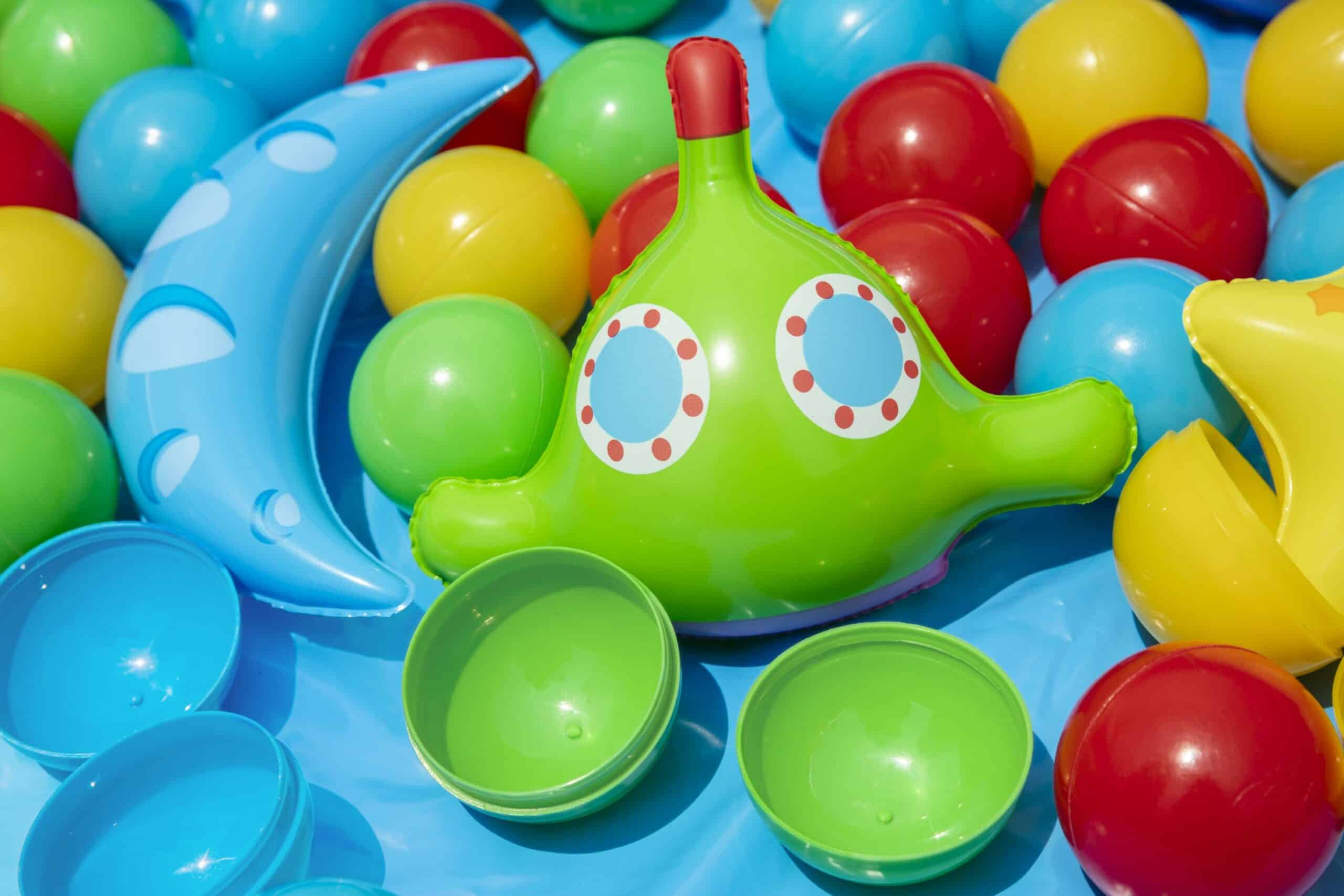 Esta piscina va a volver locos a los más pequeños. ¡Tiene 4 bolas con juguetes ocultos en su interior! Los niños jugarán a buscarlas entre las demás bolas de colores.